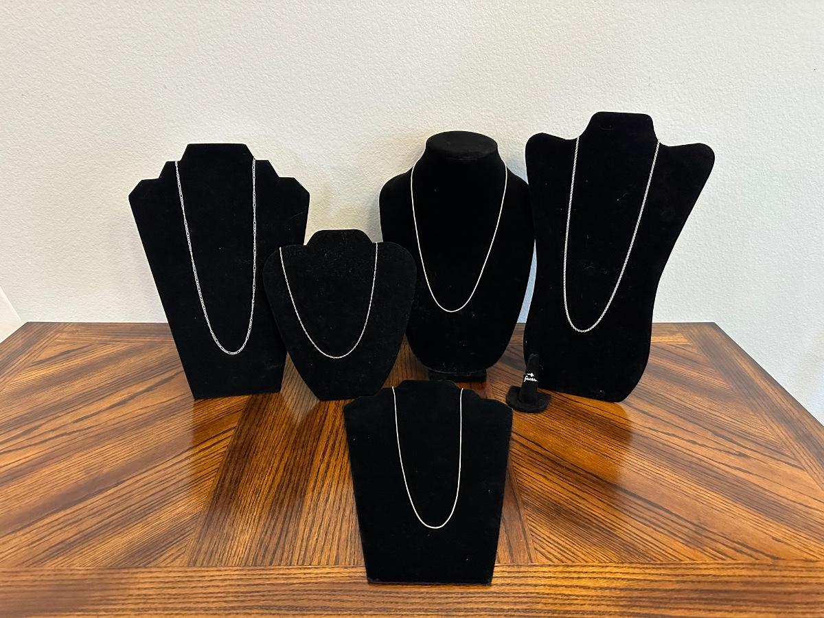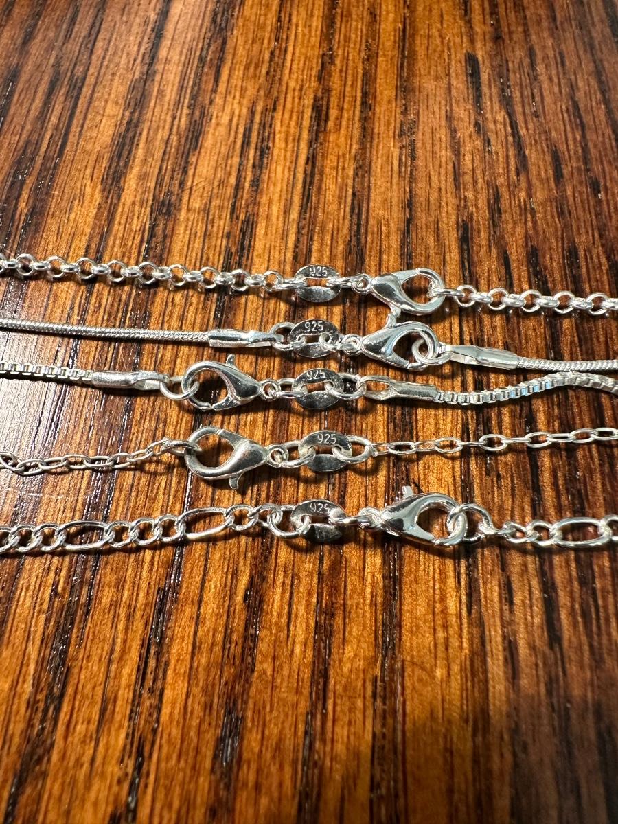 5 NECKLACES STAMPED 925 AND 925 “FAITH” RING