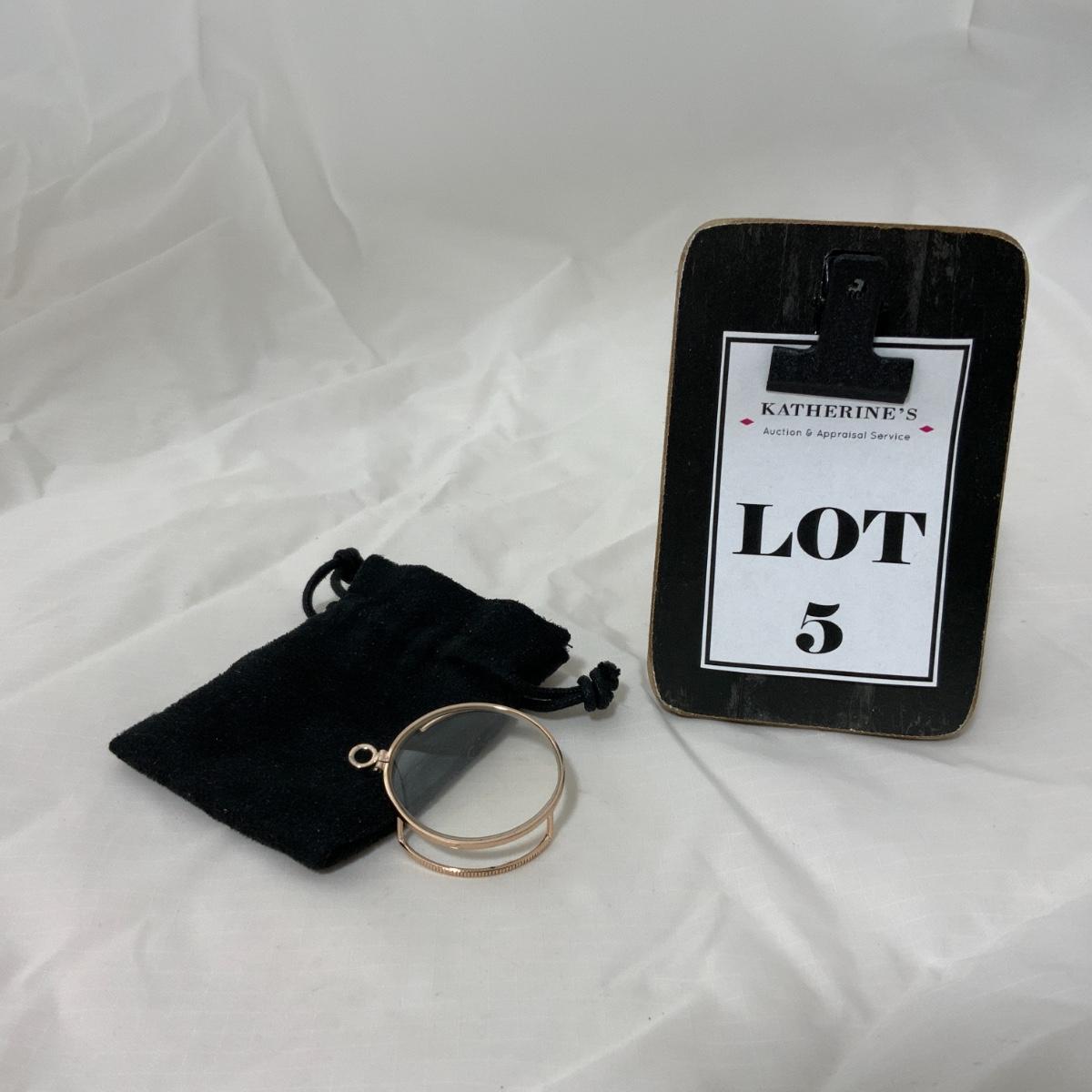 From the Estate of Peter Radovanovich: This Monocle appears to have never been used. It has a gold hue to it, but there are no markings. It is very similar to the monocle in lot number 3. Provides minimal to no magnification. Please see photos for details and condition. ::: Shipping is available on this lot. If you require shipping you must let us know at the close of the auction. We will coordinate with you after the item has been won. Shipping fees will include insurance up to or exceeding the value of all items being mailed. If you have any questions regarding this lot please contact the auctioneer either via this website, by direct email or by phone. PICK UP TIMES and other important information can be found in the TERMS and DESCRIPTION of the auction. Please take a look for pertinent information. Thanks!