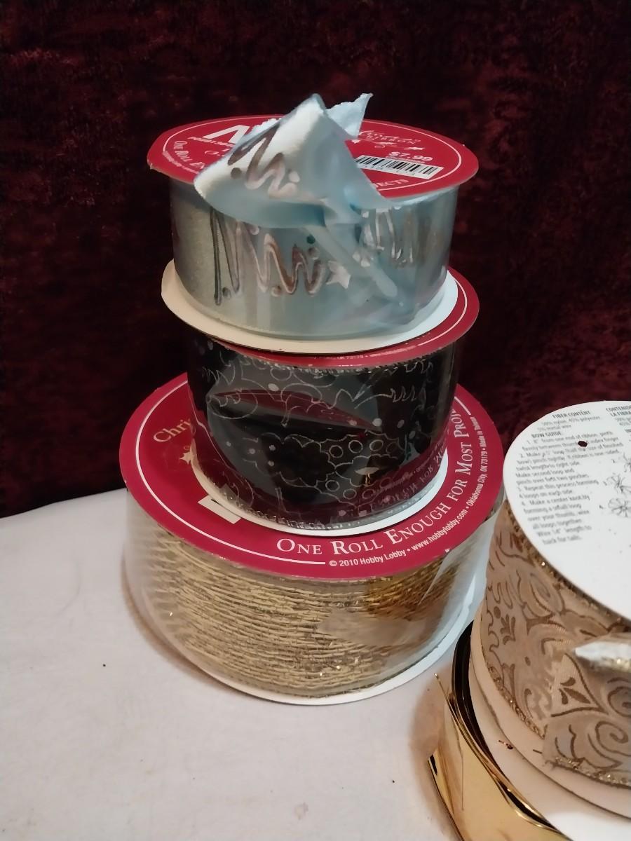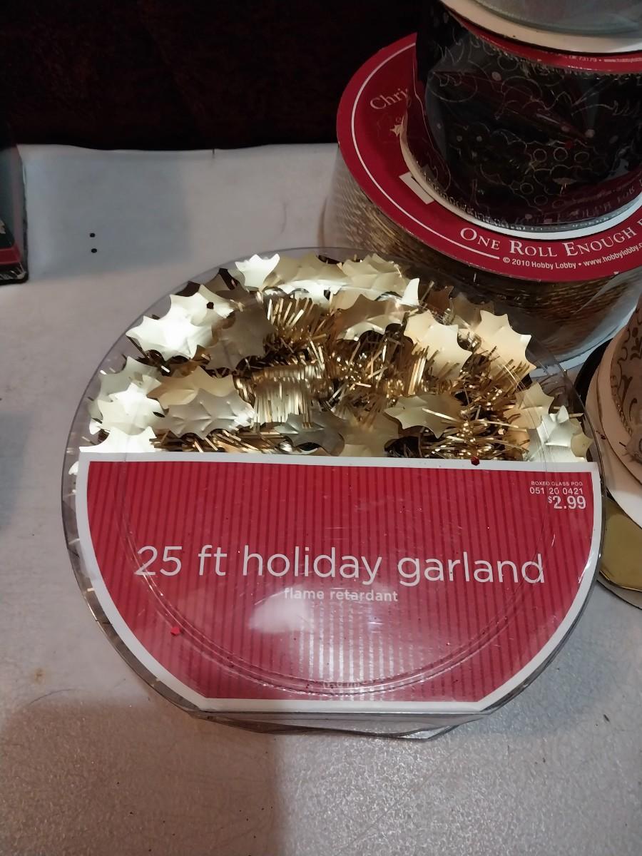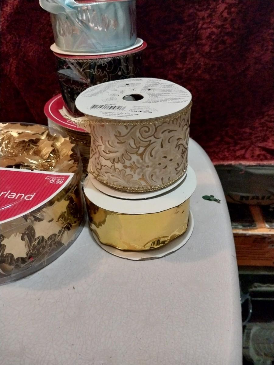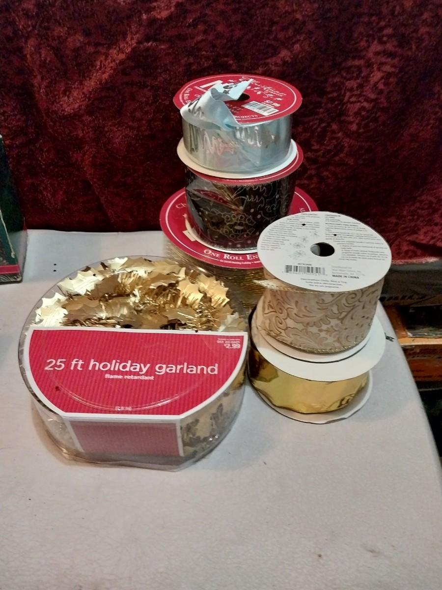 5 NEW ROLLS OF RIBBON AND 25 FT GARLAND