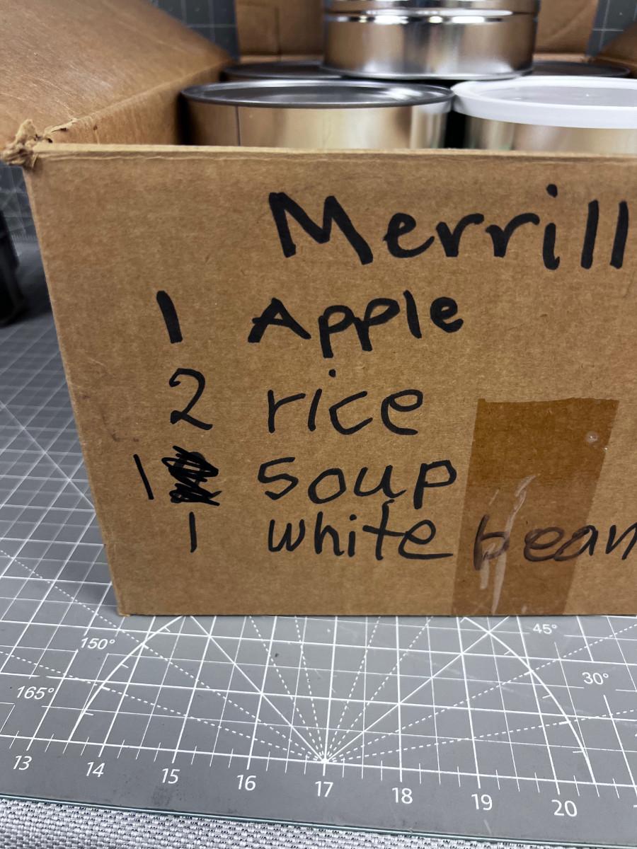 (5) No 10 Can of Food Storage: Apple. 2 Rice, 1 Soup, 1 Bean