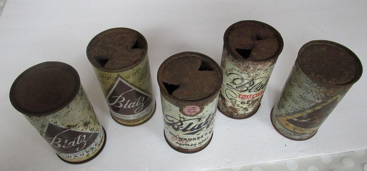 5 Old All Different Blatz Beer Cans.  Read description for more info on these cans