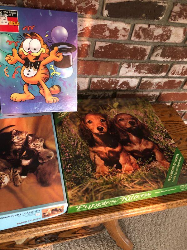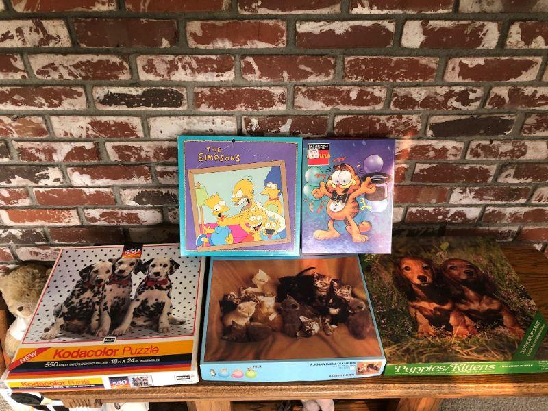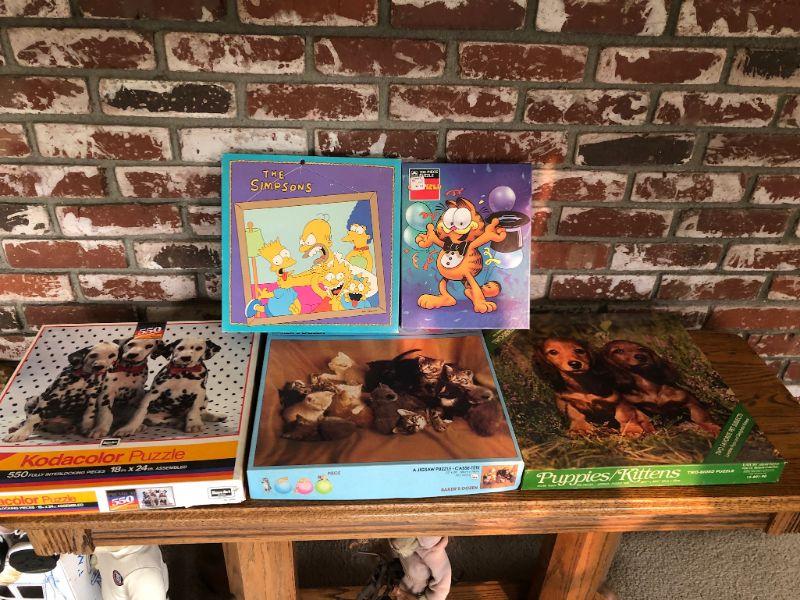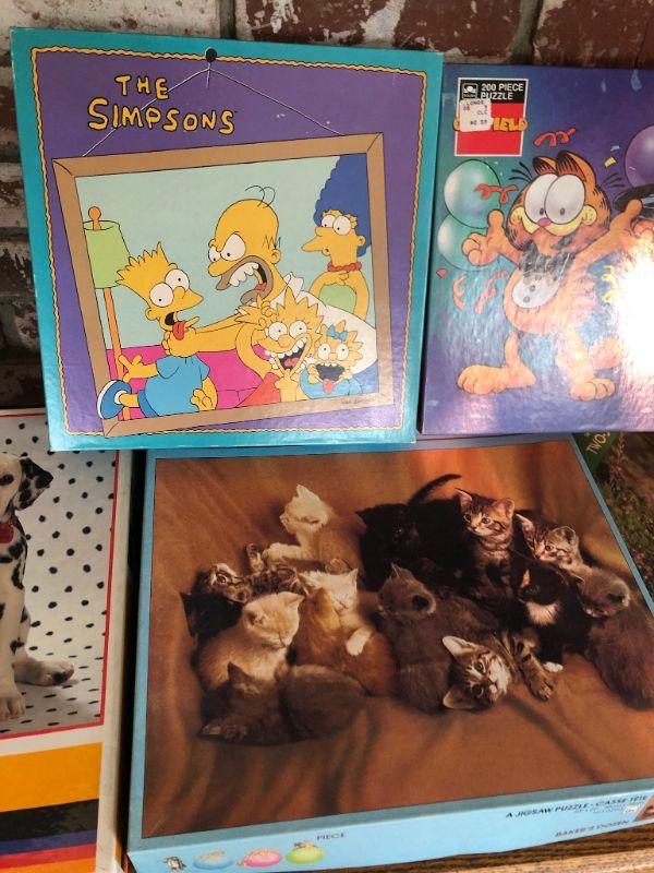 5 open box puzzles. Puppies, Kittens, Garfield and The Simpsons.