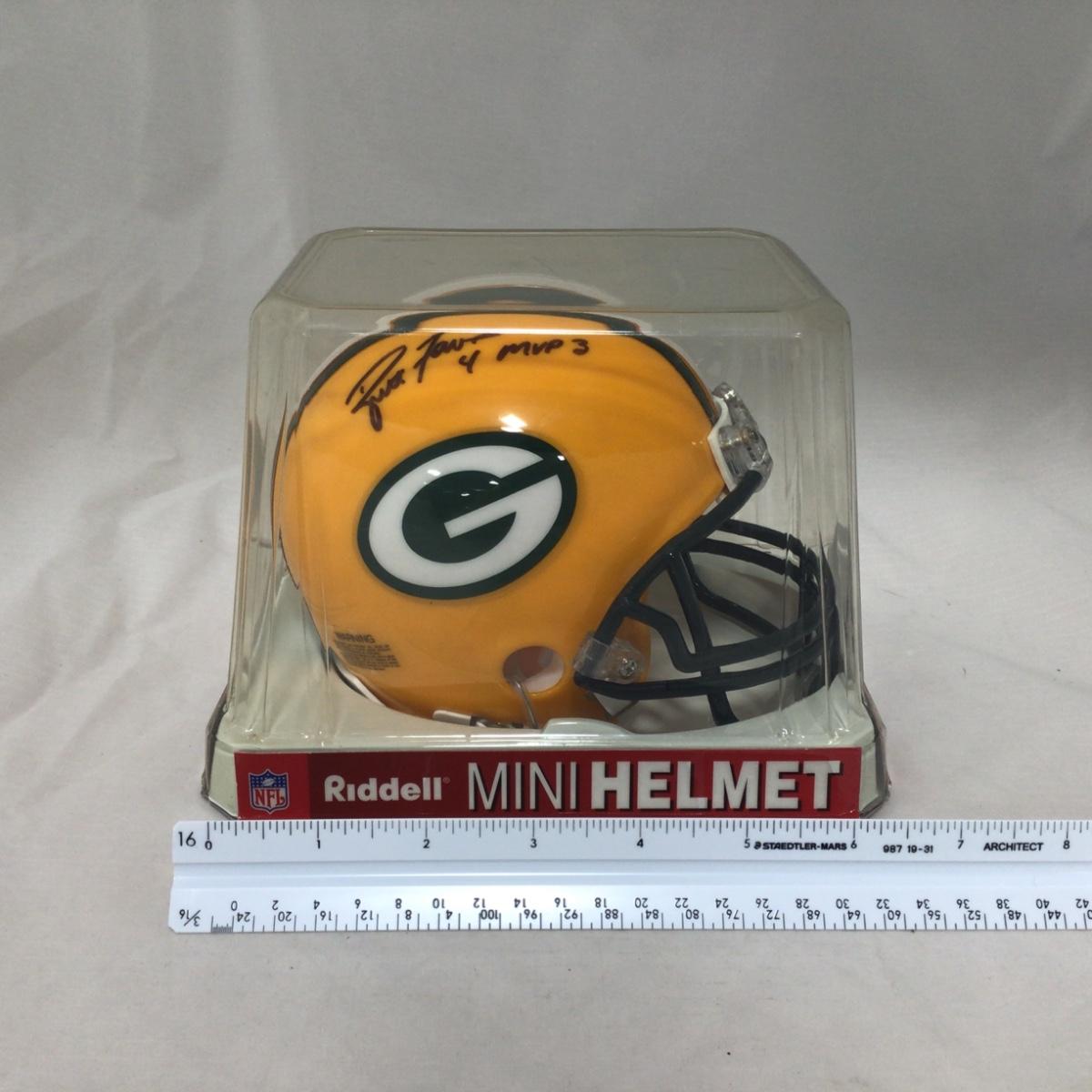 Brett Favre mini helmet Signed with no Certificate of Authenticity, item is assumed authentic however not guaranteed. Please see photos for details and condition. ::: Shipping is available on this lot. If you require shipping you must let us know at the close of the auction. We will coordinate with you after the item has been won. Shipping fees will include insurance up to or exceeding the value of all items being mailed. If you have any questions regarding this lot please contact the auctioneer either via this website, by direct email or by phone. PICK UP TIMES and other important information can be found in the TERMS and DESCRIPTION of the auction. Please take a look for pertinent information. Thanks!