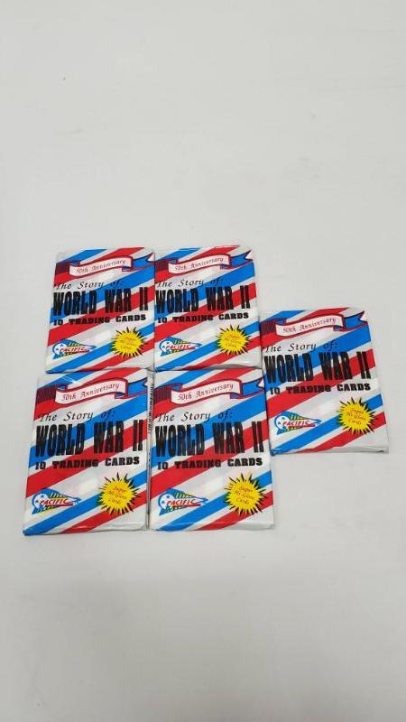 5 Packs of 10 Trading Cards, The Story of: World War II, 50th Anniversary - New