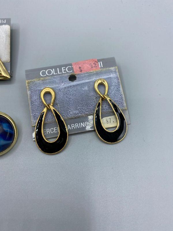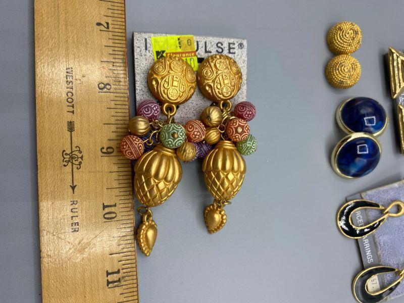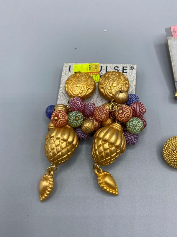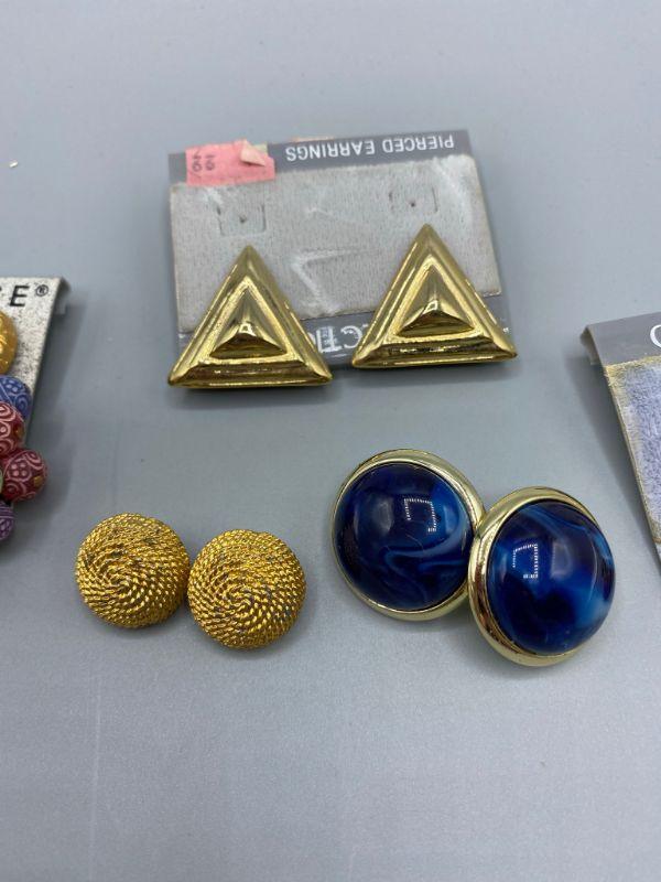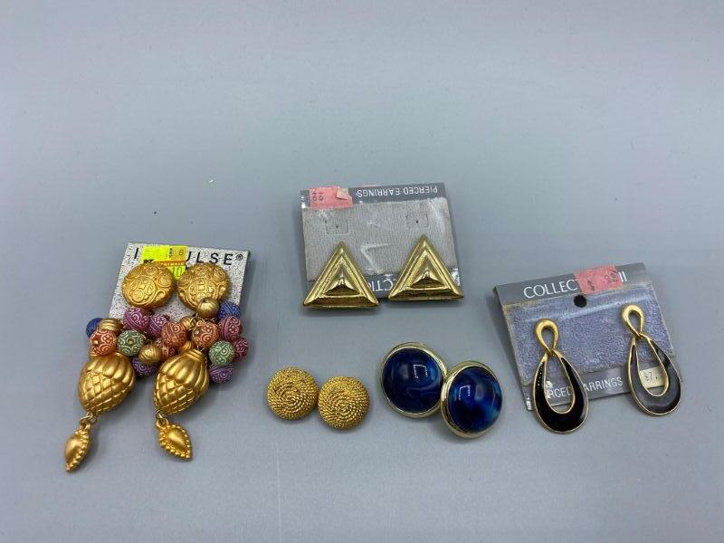 5 pairs of vintage fashion earrings. All but the large dangle pair are for pierced ears, the large ones are clip style.