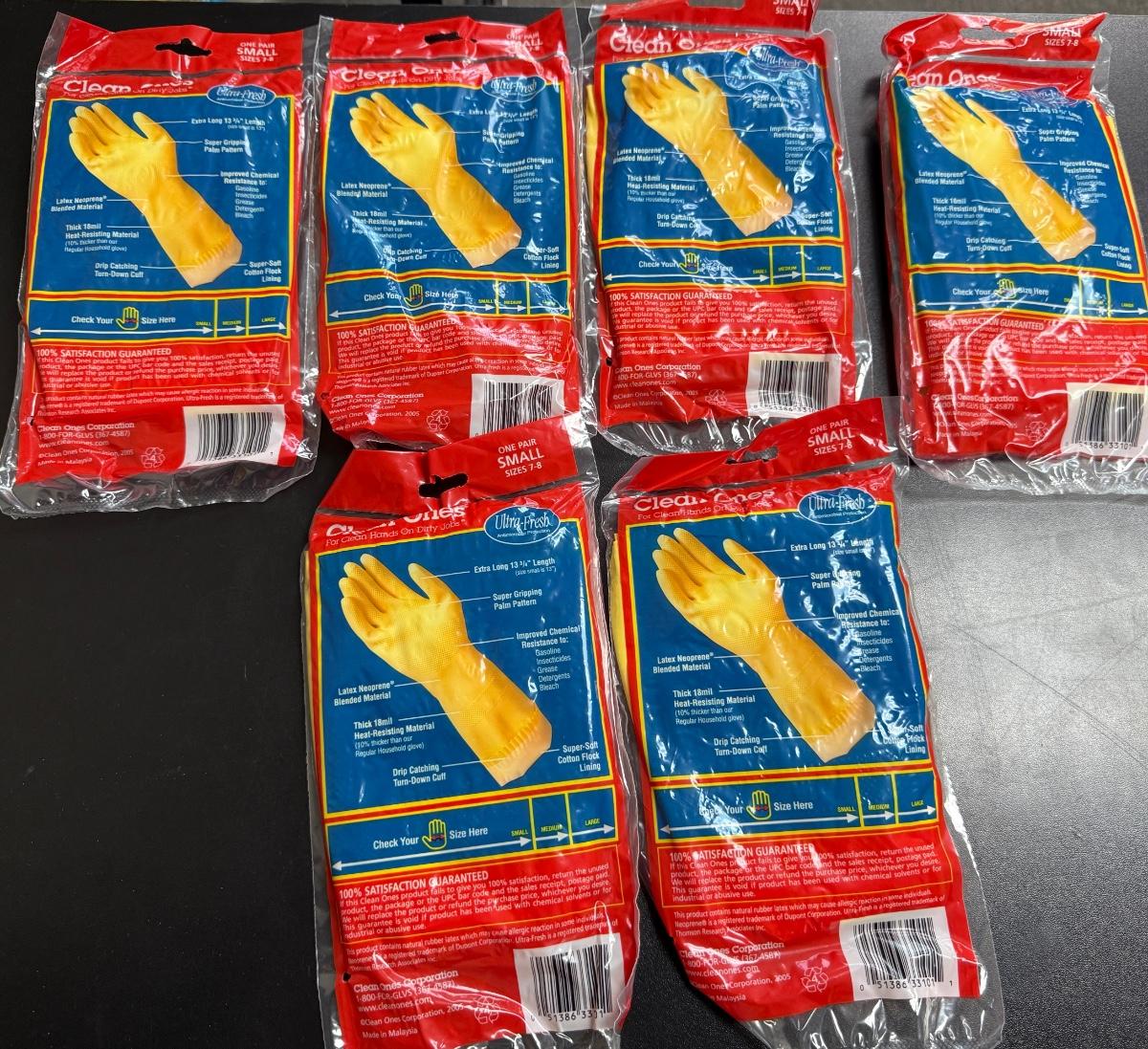 5 pairs of Latex Gloves Yellow SIZE Small NEW in pkg.