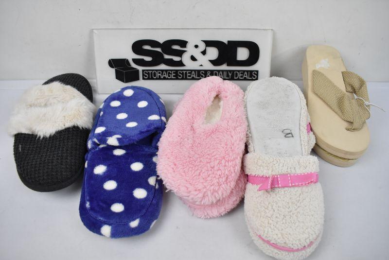 5 pairs of Women's Shoes Size "Small" 4 prs Slippers & 1 pr Flip Flops