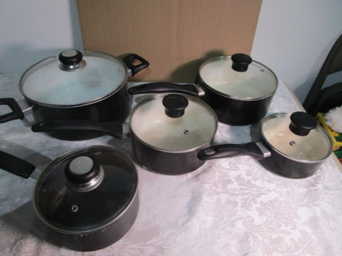 5 pans with glass lids