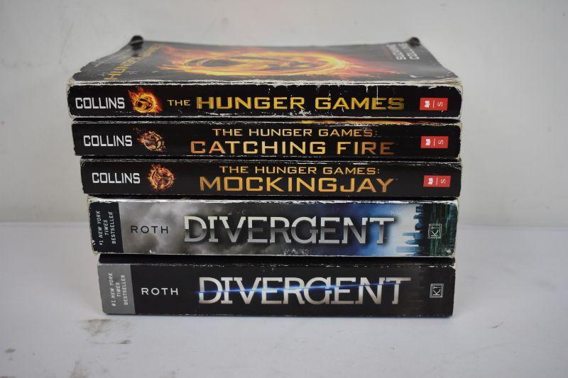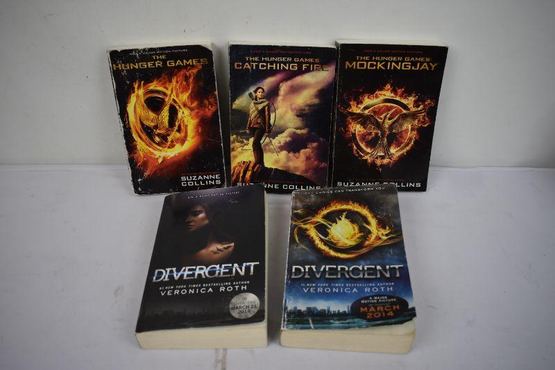 5 Paperback Books - Young Adult Hunger Games & Divergent