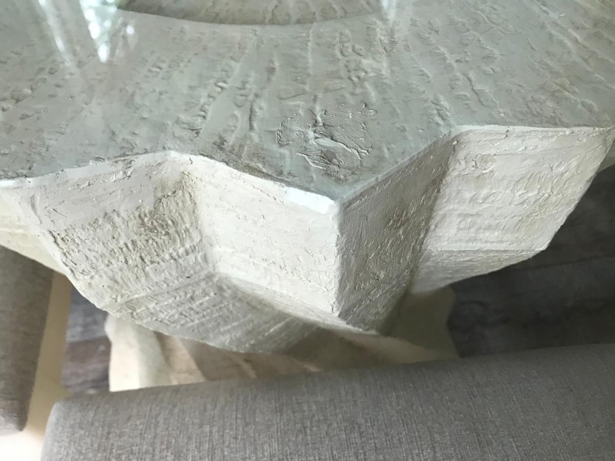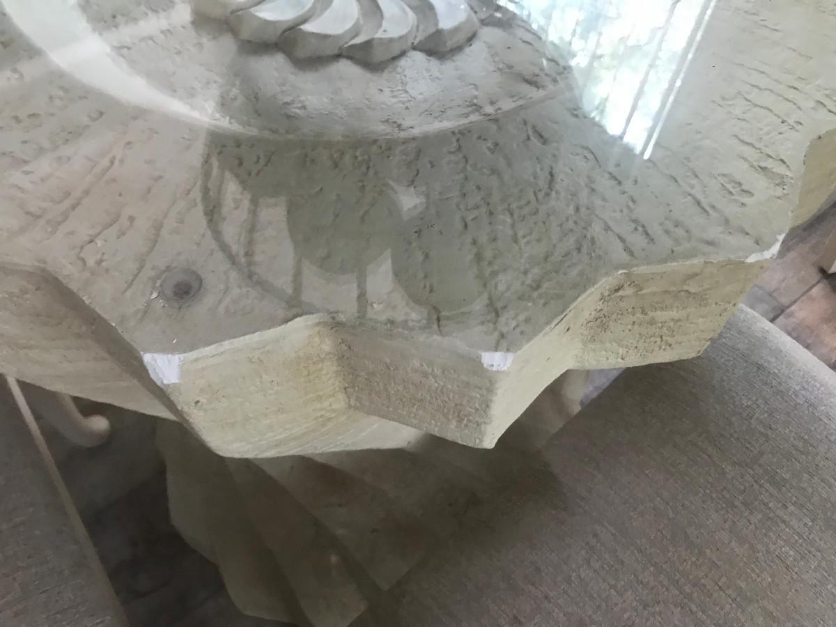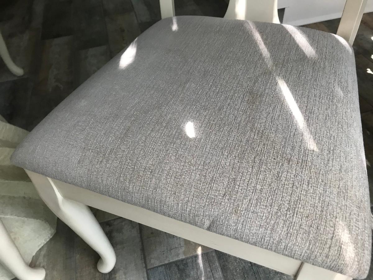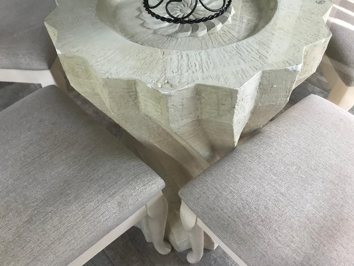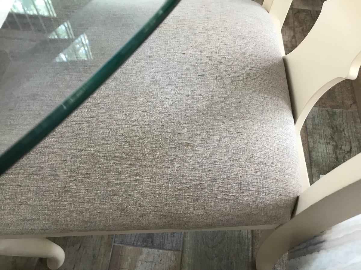 TABLE, GLASS TOP WITH BASE: 47.5"DIA X 29.25"H, SCRATCHES ON GLASS TOP , STAINS ON CHAIR CUSHIONS