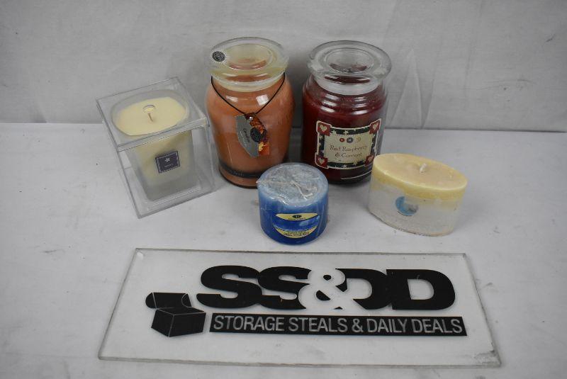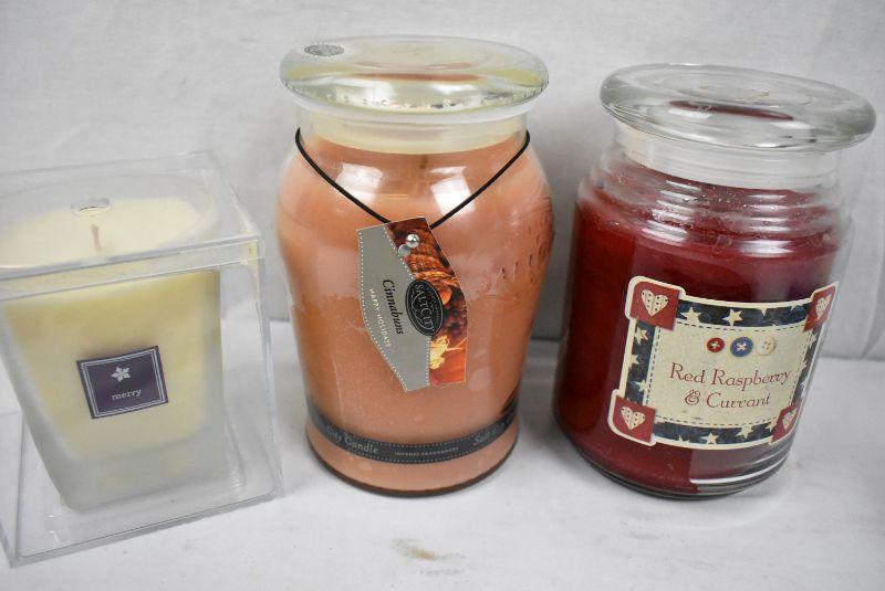 5 pc Candles: Salt City Cinnabuns. Merry, Raspberry Currant, Sea Breeze