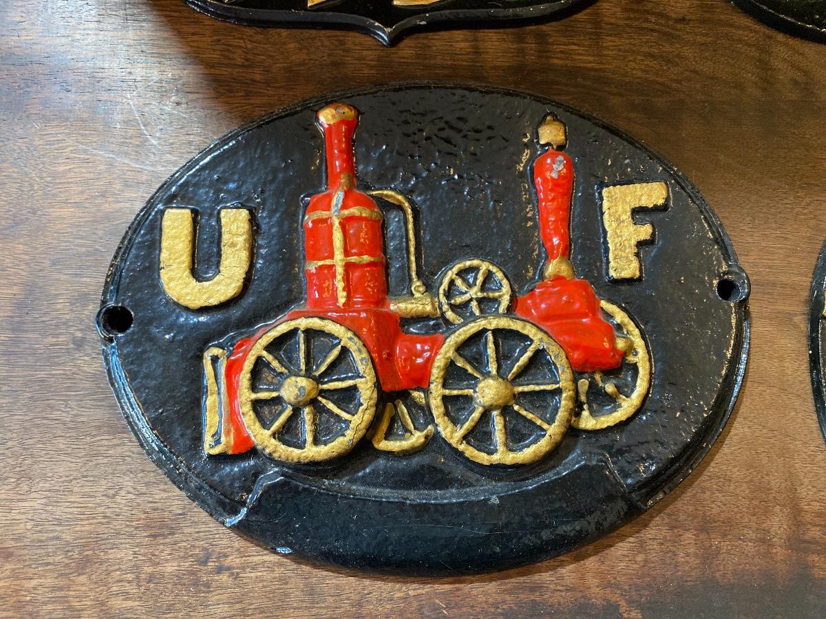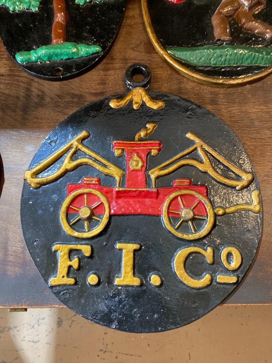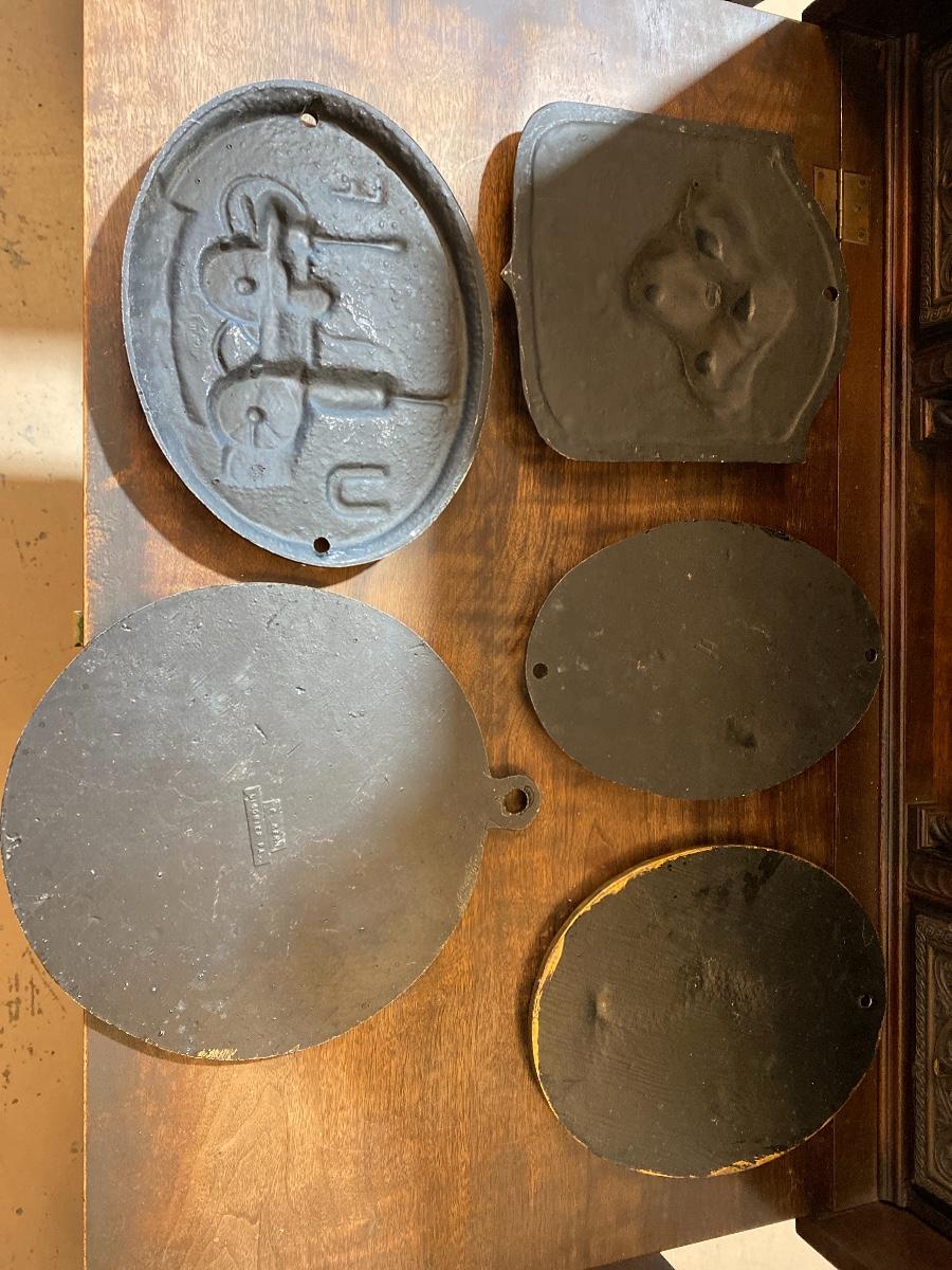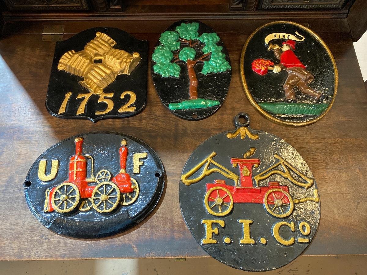 5 pc. Cast Iron Fire Fireman Plaques Wall Hanging