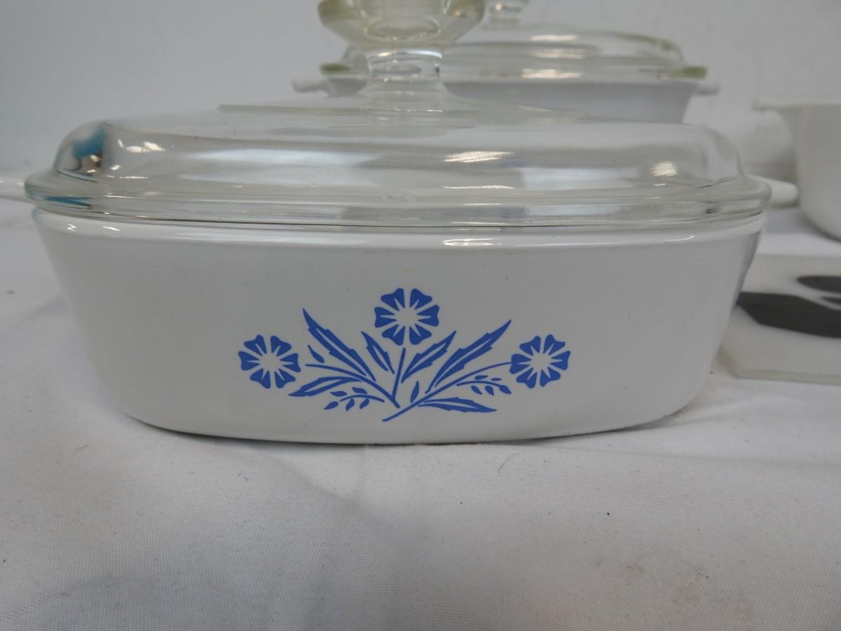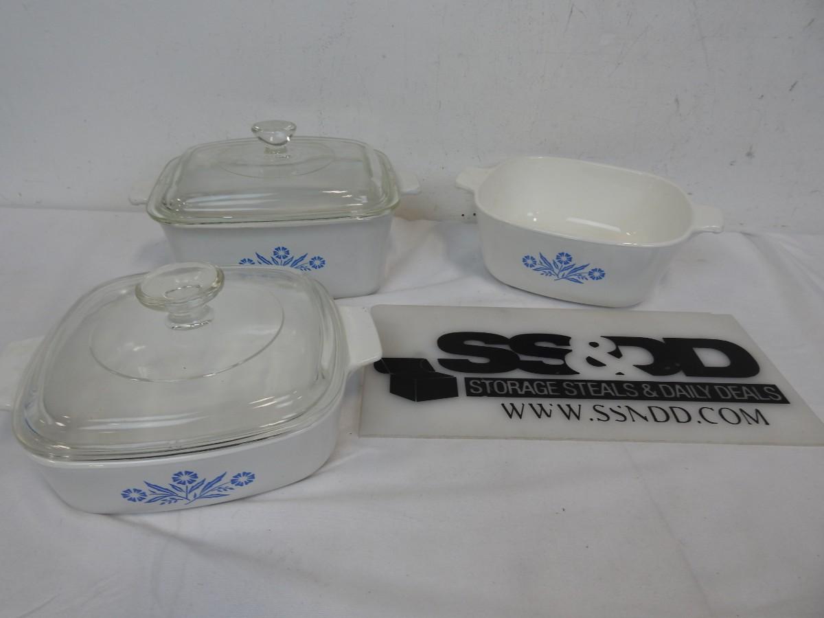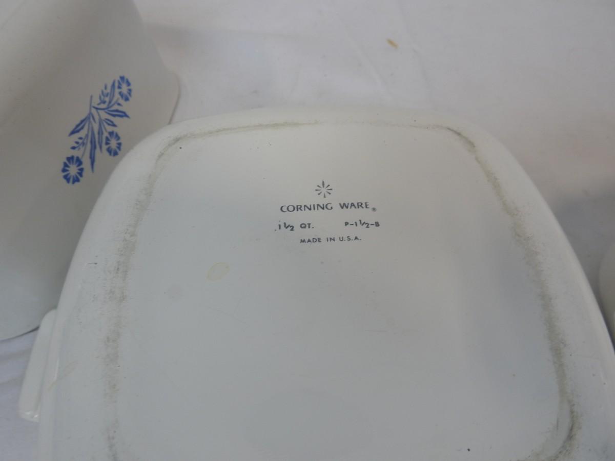 5 PC Corningware Cornflower Dish Lot: 2 W/ Lids, 7x5 1/2in, 1 Quart, 1 1/2 Quart