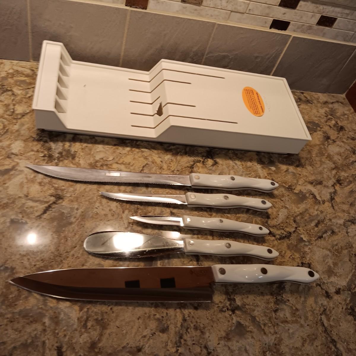 5 PC CUTCO CUTLERY SET WITH HOLDER