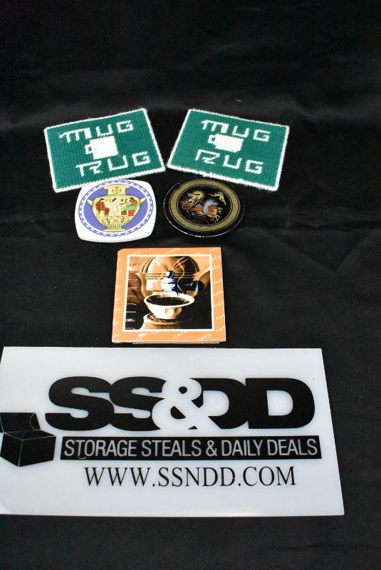5 pc Drink Coasters. 2 are Handmade "Mug Rug"