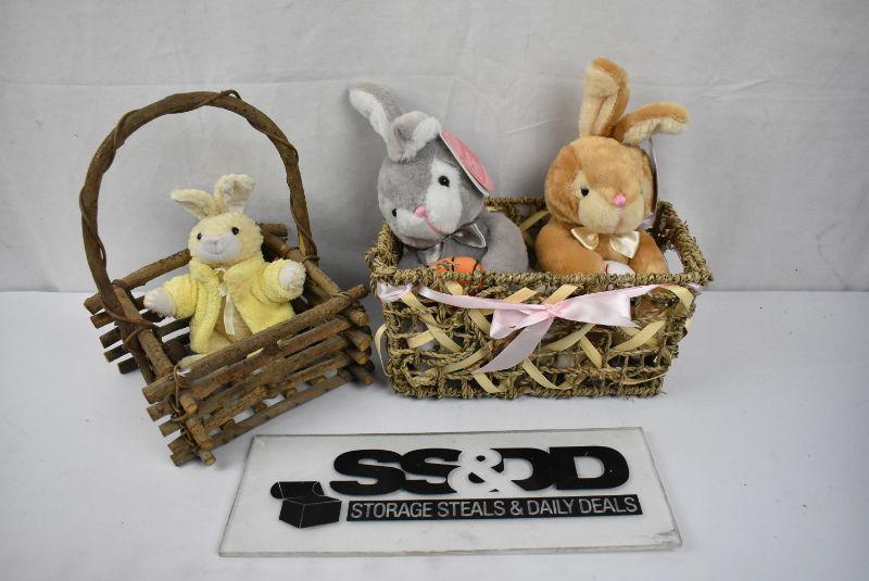 5 pc Easter: 2 Baskets & 3 Stuffed animal bunnies