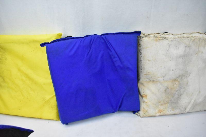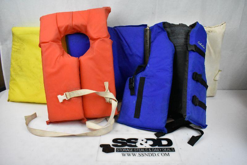 5 pc Floatation Devices: 2 Life Jackets, 2 seat cushions