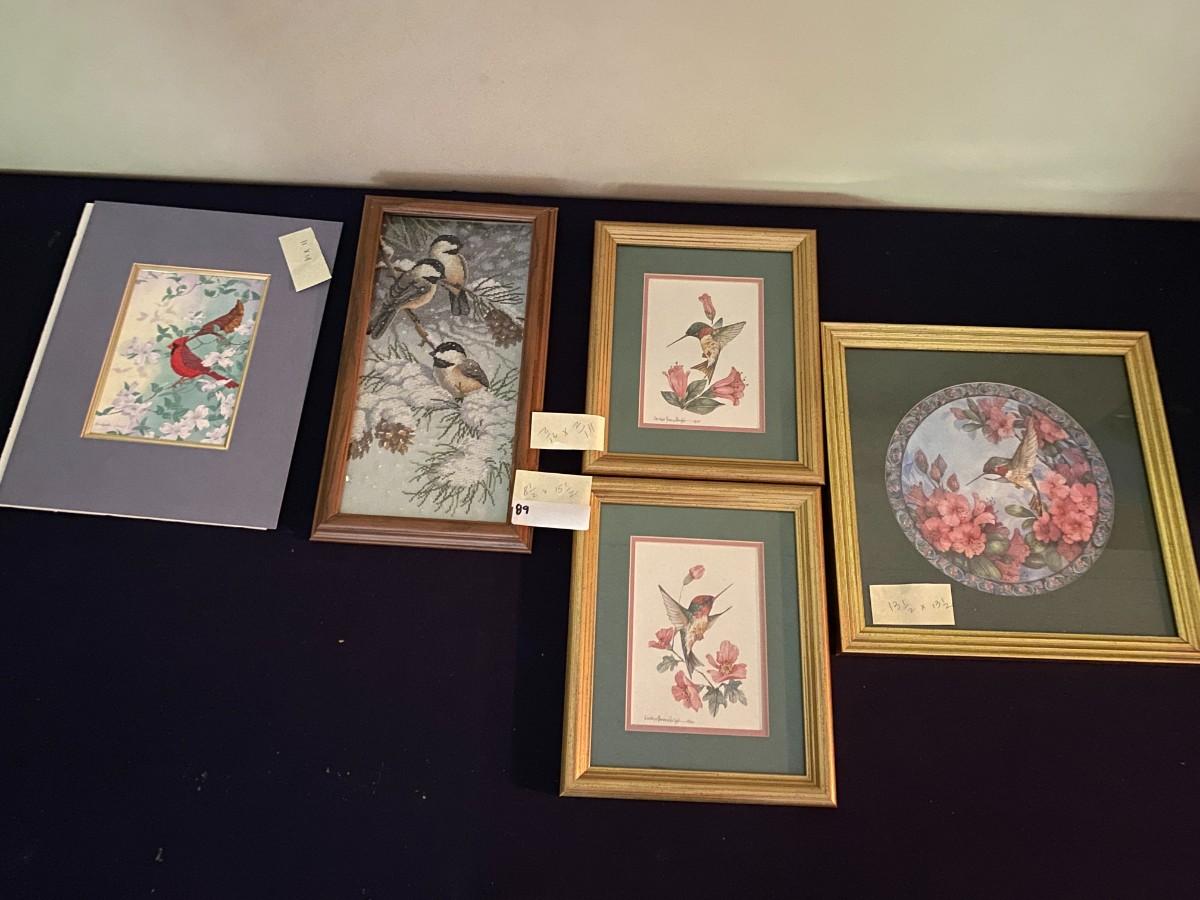 5 Pc Framed Bird Art Lot