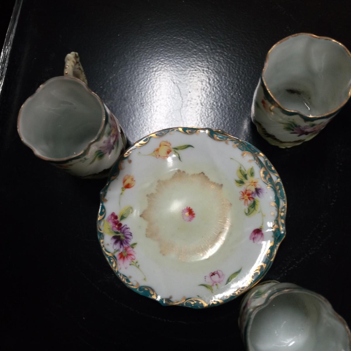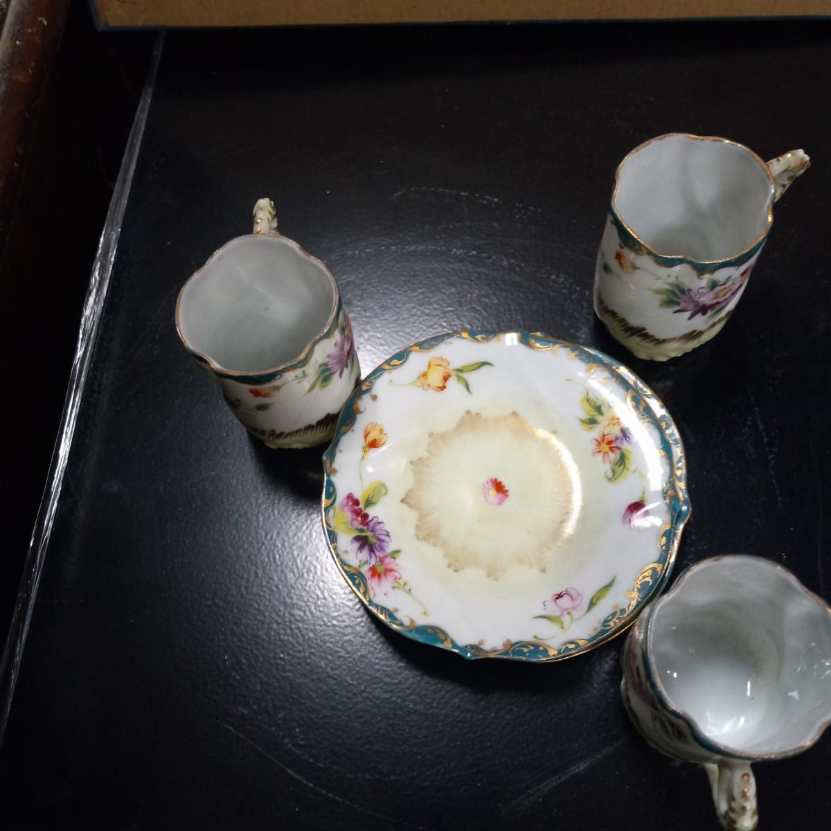 Tis lot is for 1 Glass 5 pc Teacup Set Contains 3 Tea cups and 2 tea saucers all are in good condition