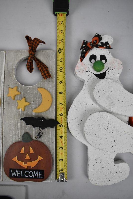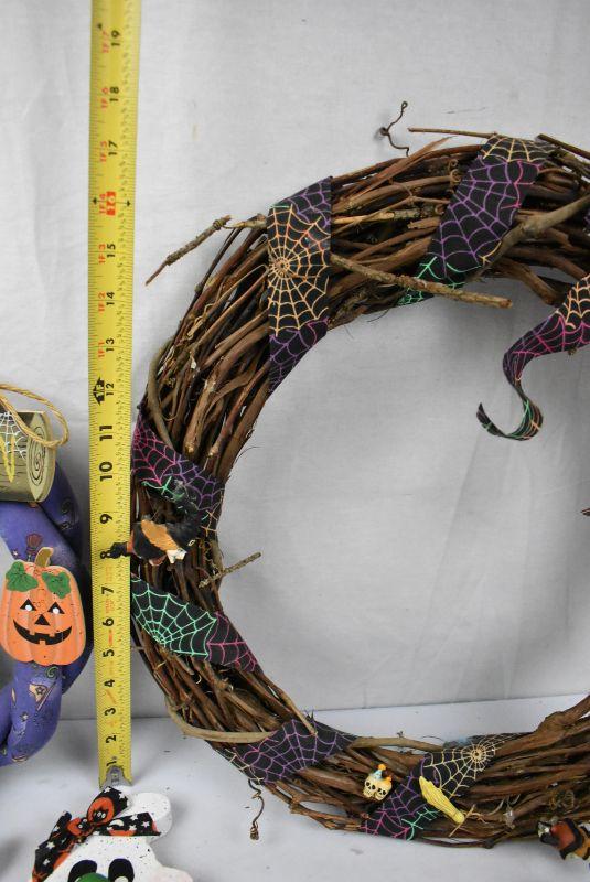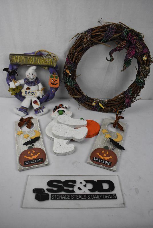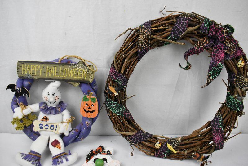5 pc Halloween Decor: 2 wreaths, 2 doorknob hangers