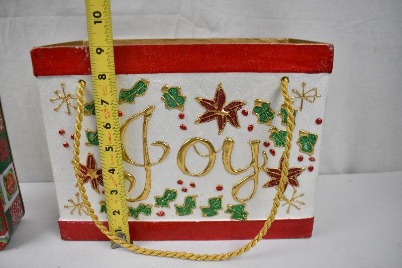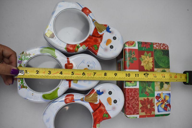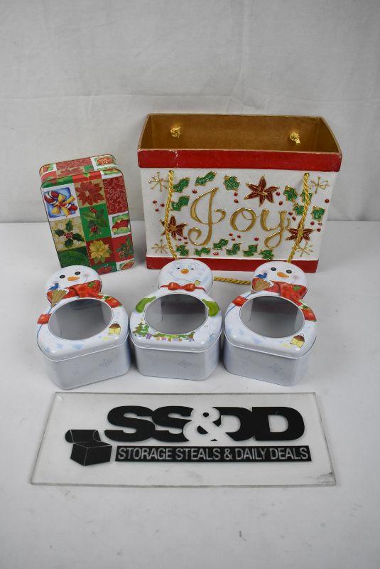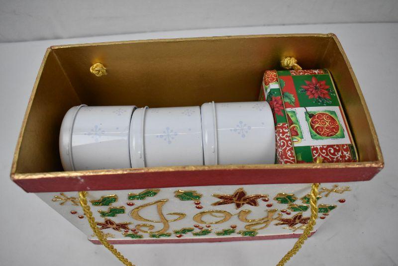 5 pc Holiday Containers. 1 Box with handles + 4 Tins, Christmas/Winter Theme