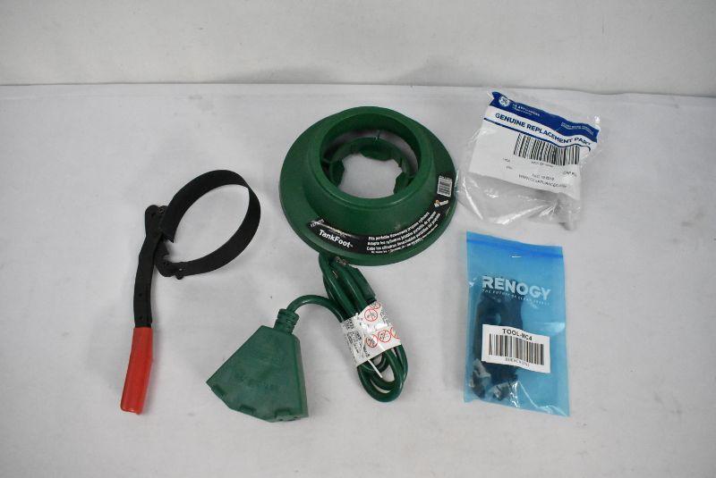 5 pc Home Care Lot: TankFoot, Extension Cord, Appliance Replacement Parts, etc