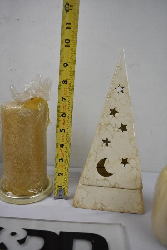5 pc Home Decor Lot: 3 Candles, 1 Wax Warmer, Tea Light Holder