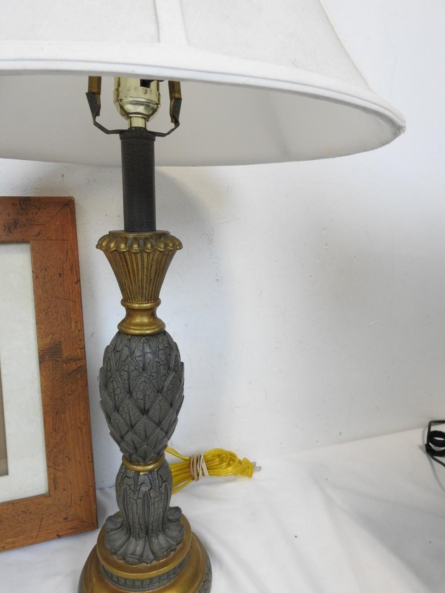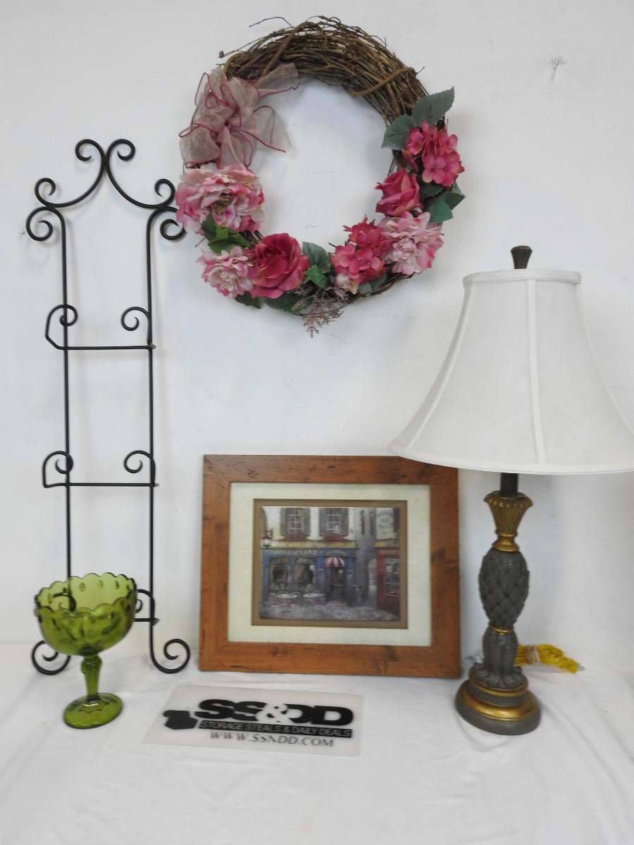 5 pc Home Decor: Pineapple Pattern Lamp, Black Iron Pic Holder, Wreath, Cafe Picture