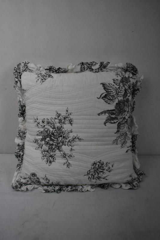 5 pc Bedding Set Black & Cream toile pattern: King Bed Skirt, King Comforter, 1 square throw pillow, 2 pillow shams