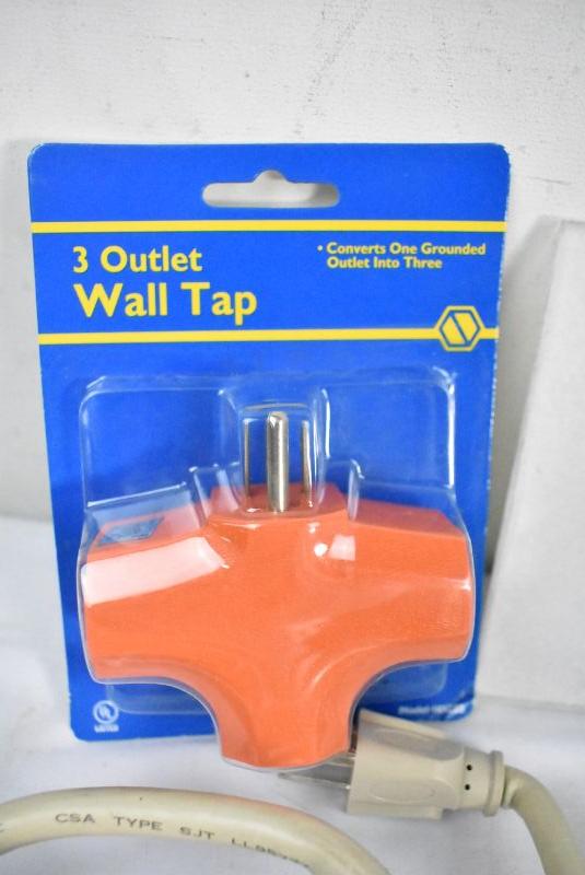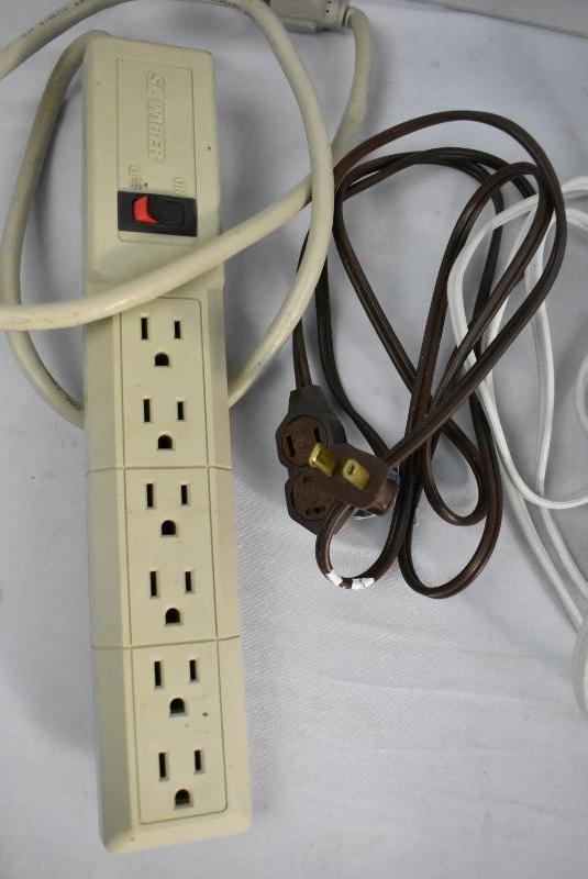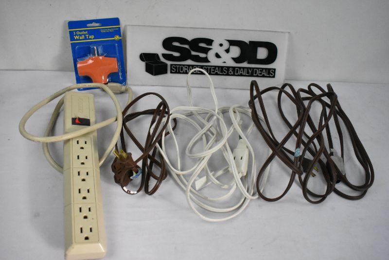 5 pc Lot: 3 Extension Cords, 1 Power Strip, 1 Wall Tap