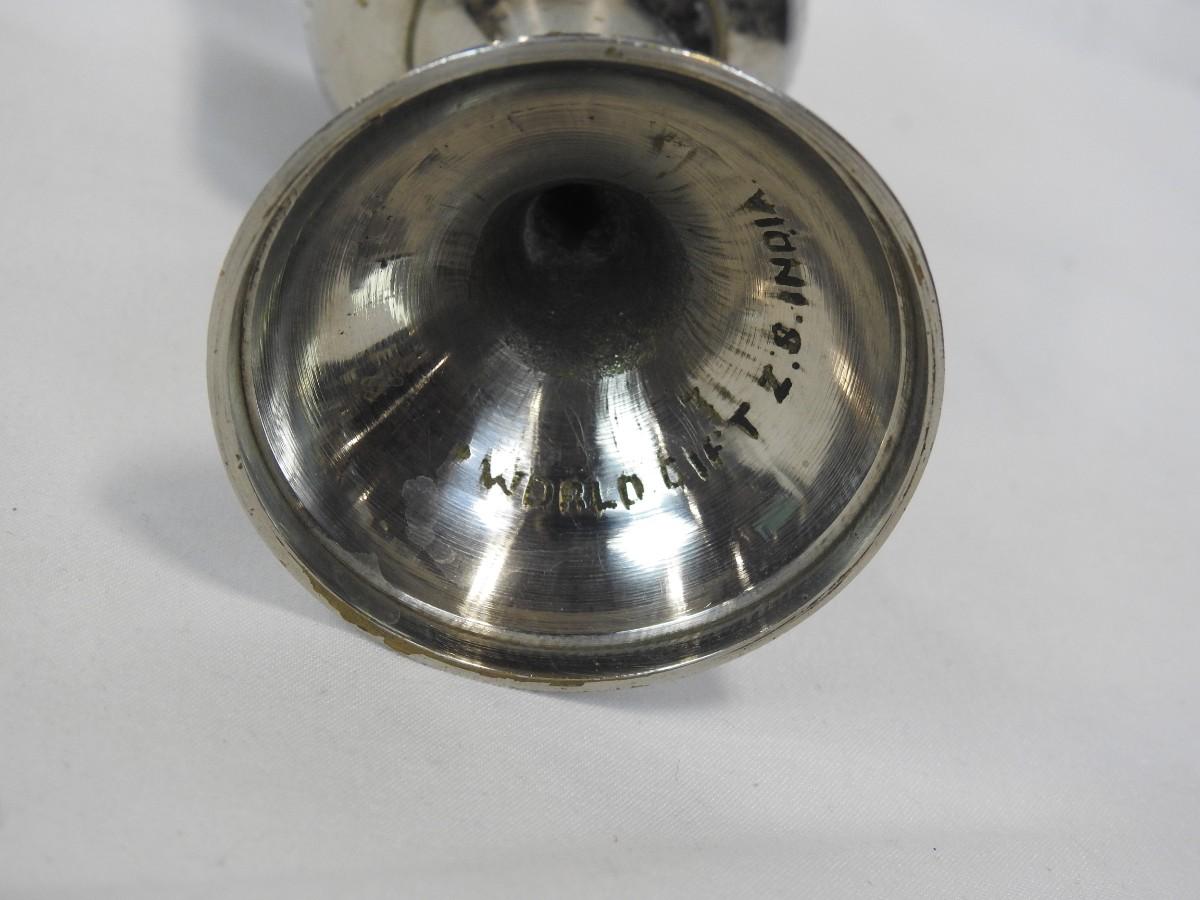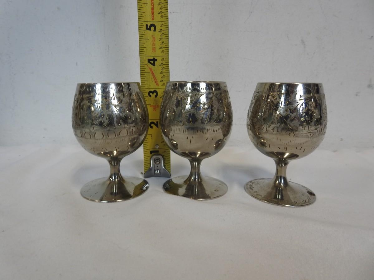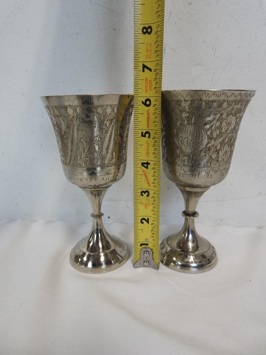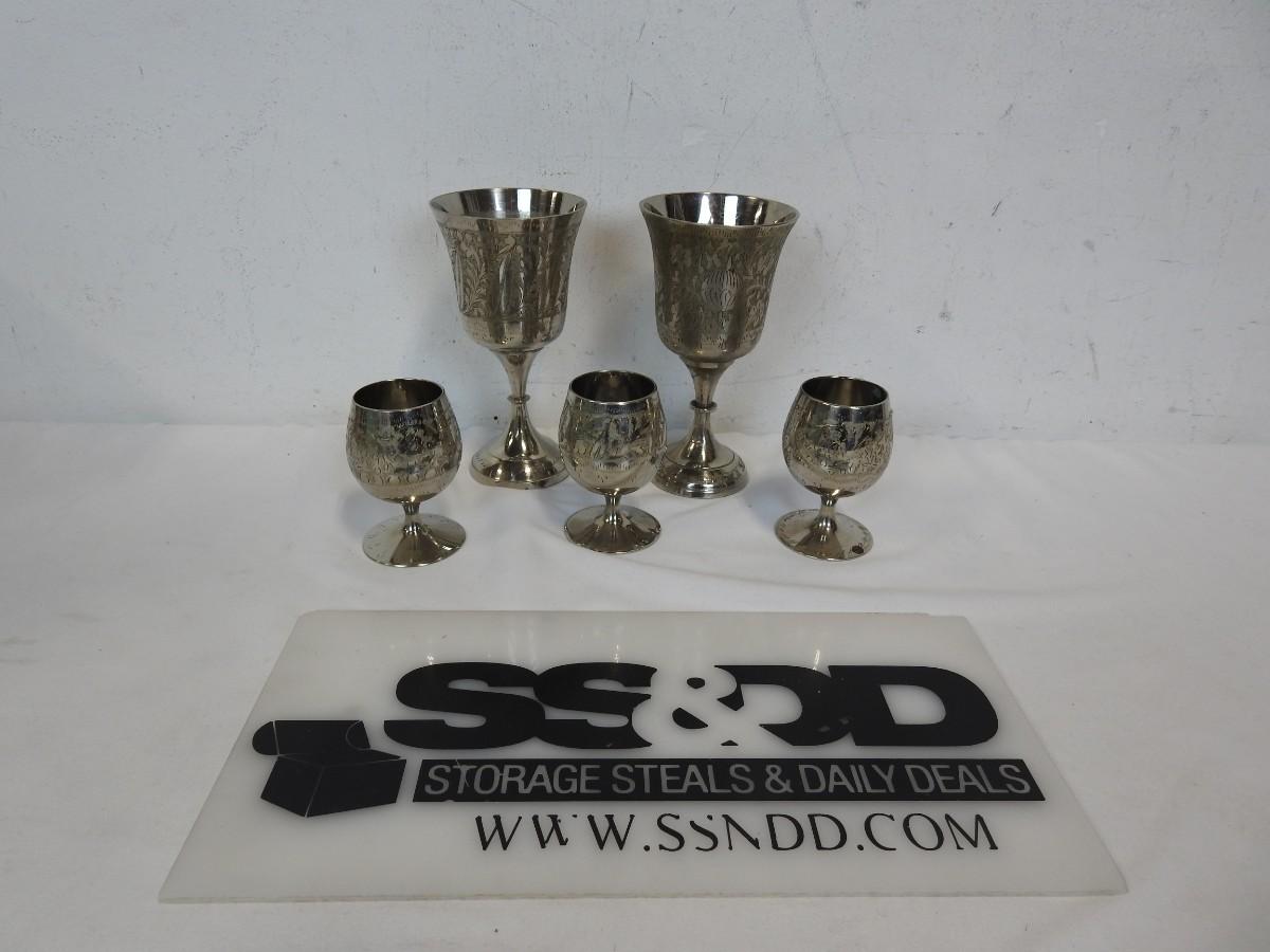 5 pc Metal Etched Chalise Goblets by World Gift. Some wear visible