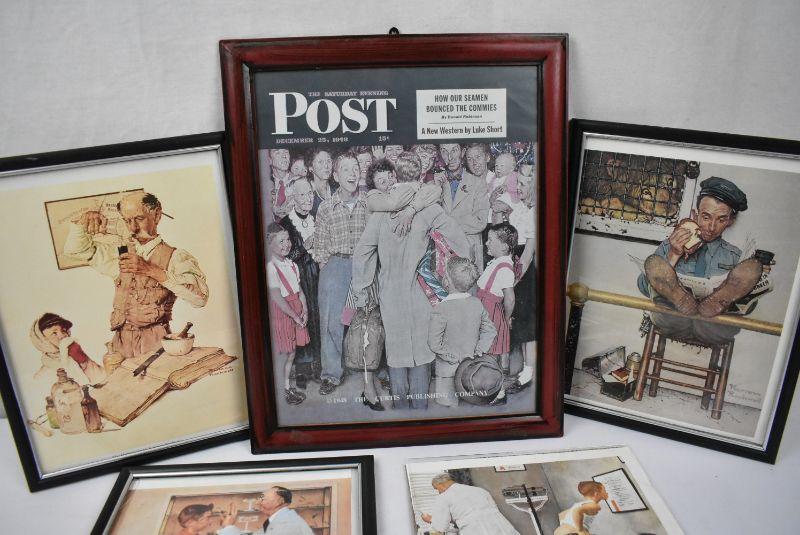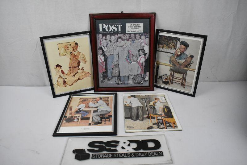 5 pc Normal Rockwell/Saturday Evening Post Print Images. 4 framed. 1 no frame