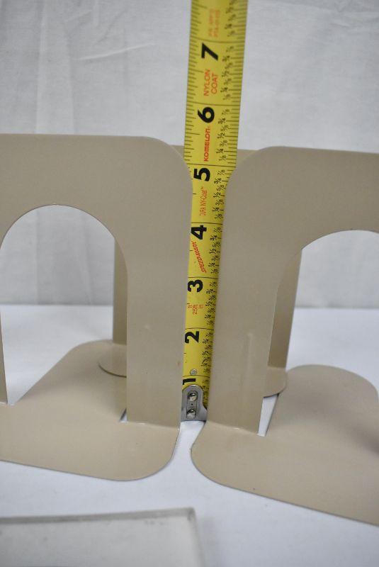 5 pc Painted Metal Bookends: 2 larger dark brown, 3 smaller tan