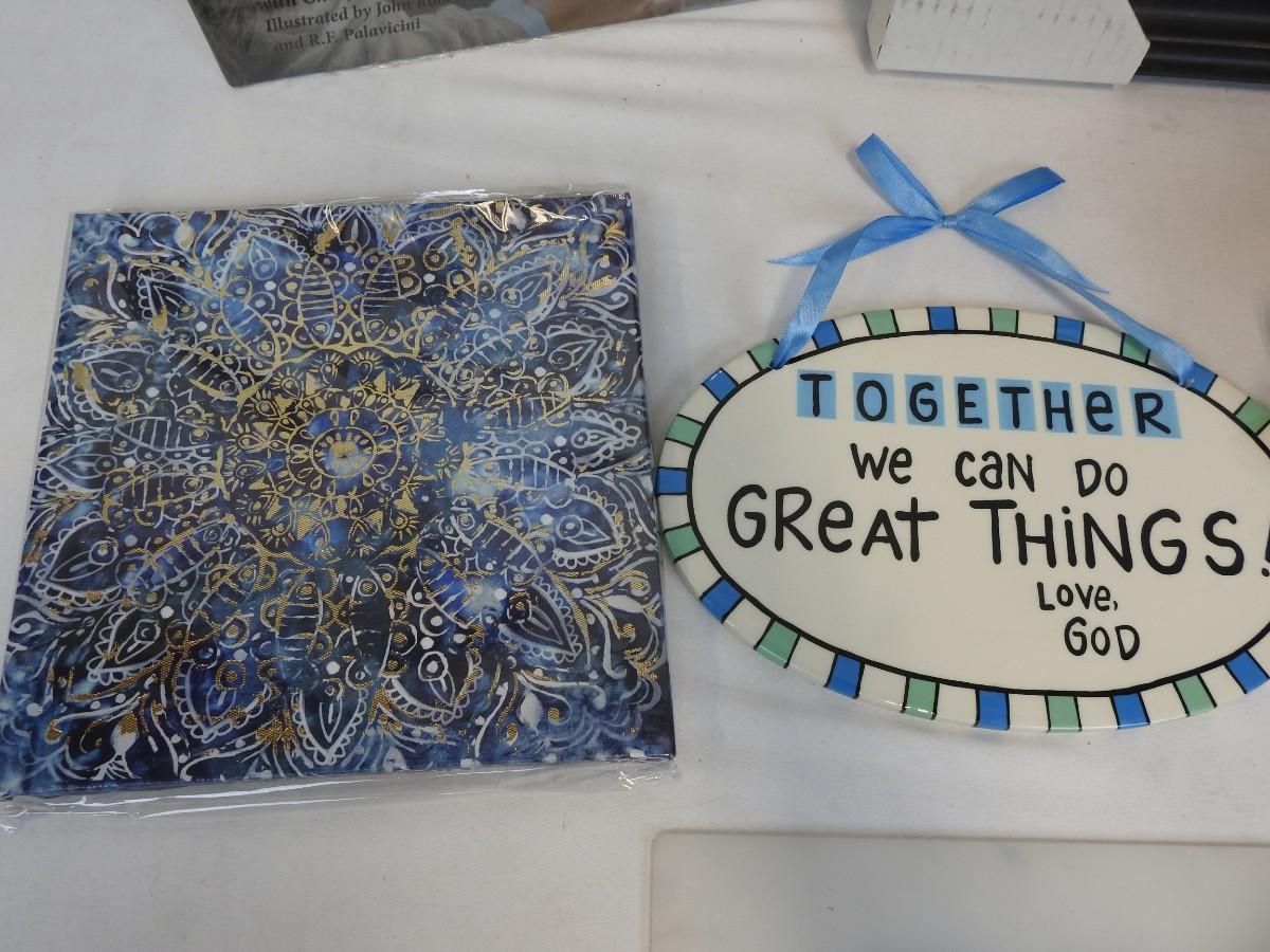 5 pc Religious & Family Theme: Windchimes, Book, Art, Wall Decor - New