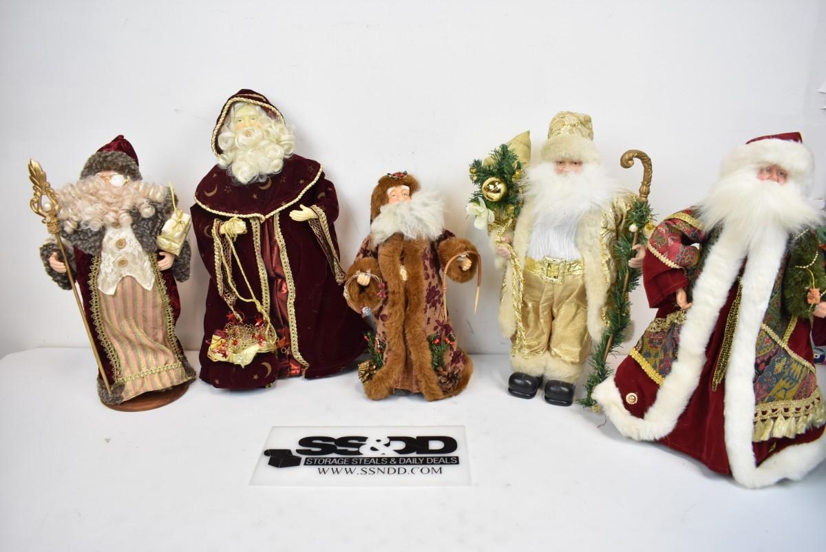5 pc Santas. 3 tree toppers & 2 Statue Figures