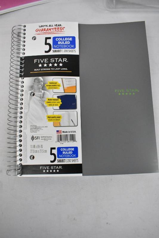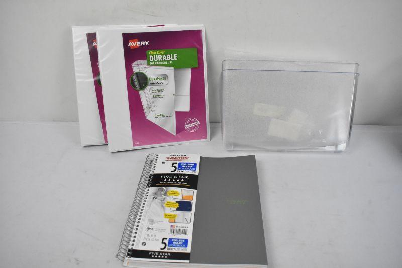 5 pc School/Office: 3 Three Ring Binders, 5 Subject Notebook, 2 Wall Hanging File Folder Holders - New