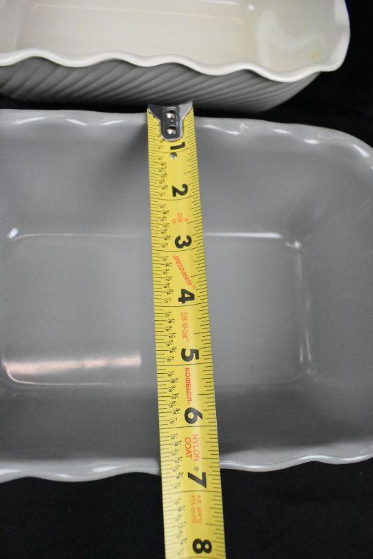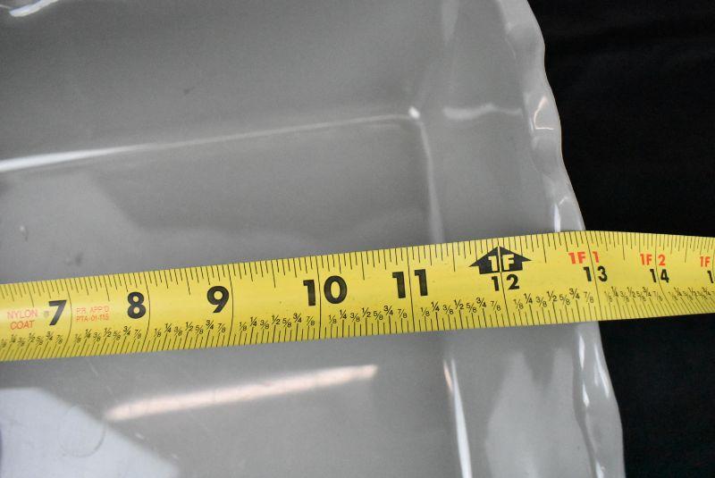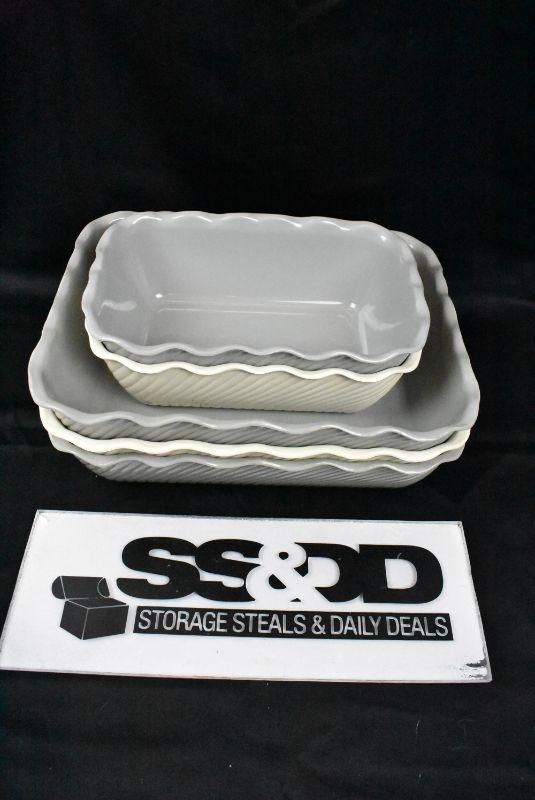 5 pc Serving Ware. Looks like glass, but is plastic. Gray & Cream