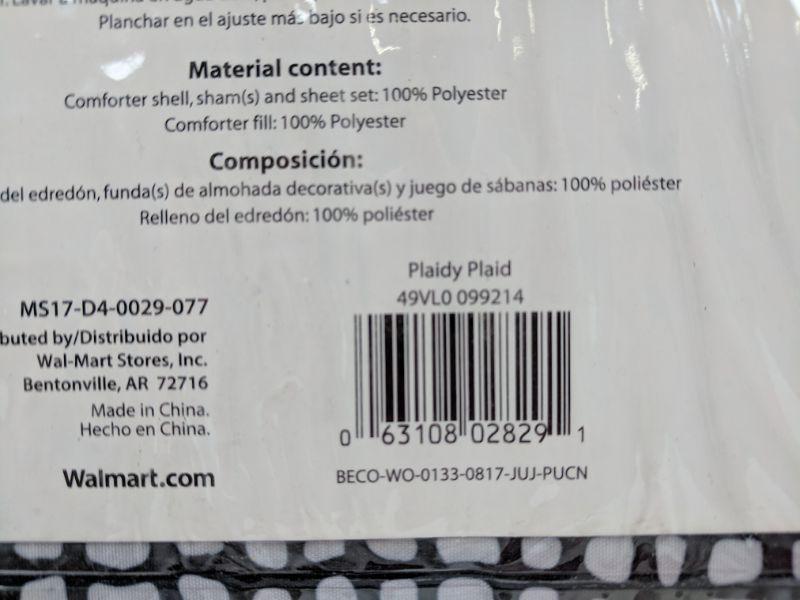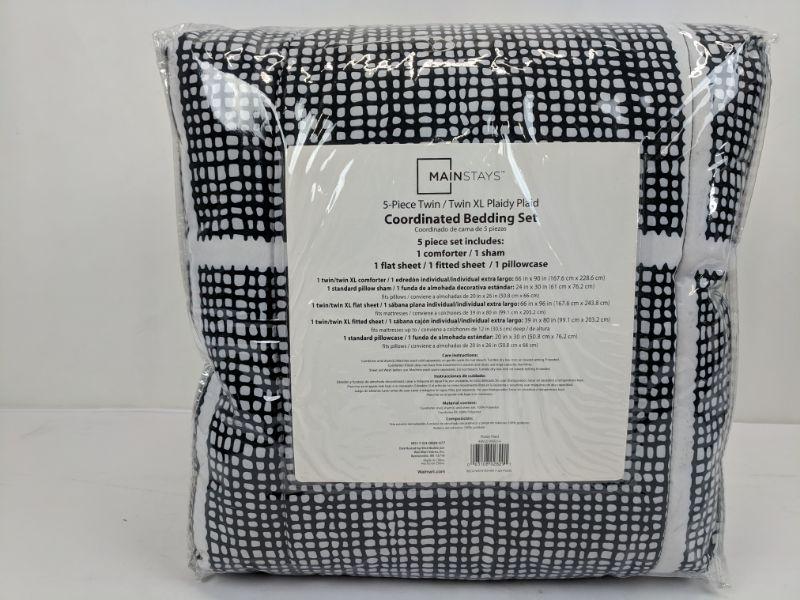 5 PC Twin/Twin XL Plaidy Plaid Coordinating Bedding Set, Black & White - New
