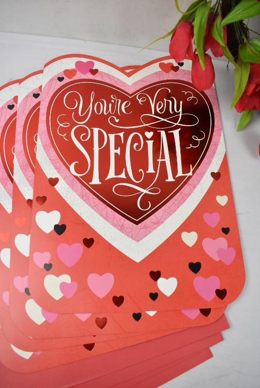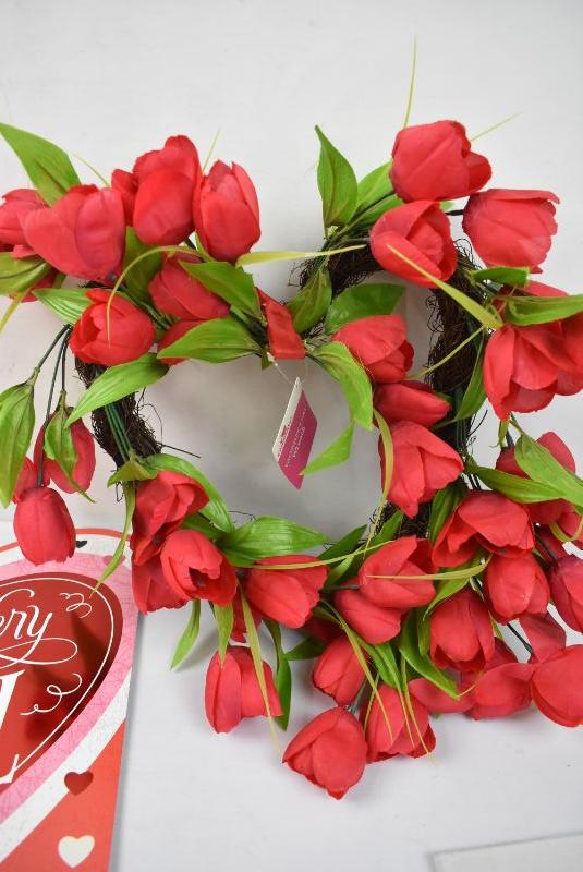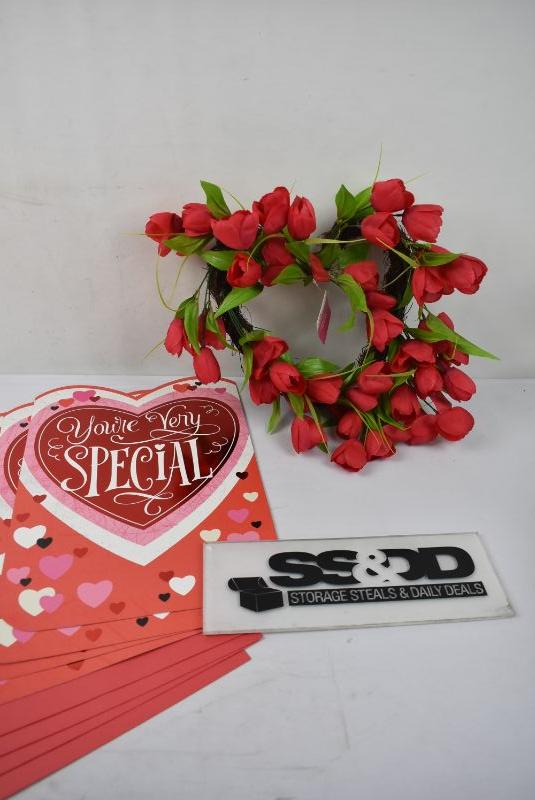 5 pc Valentine's: 4 LARGE Cards & 1 Heart Wreath, Faux Flowers, $15 Retail - New