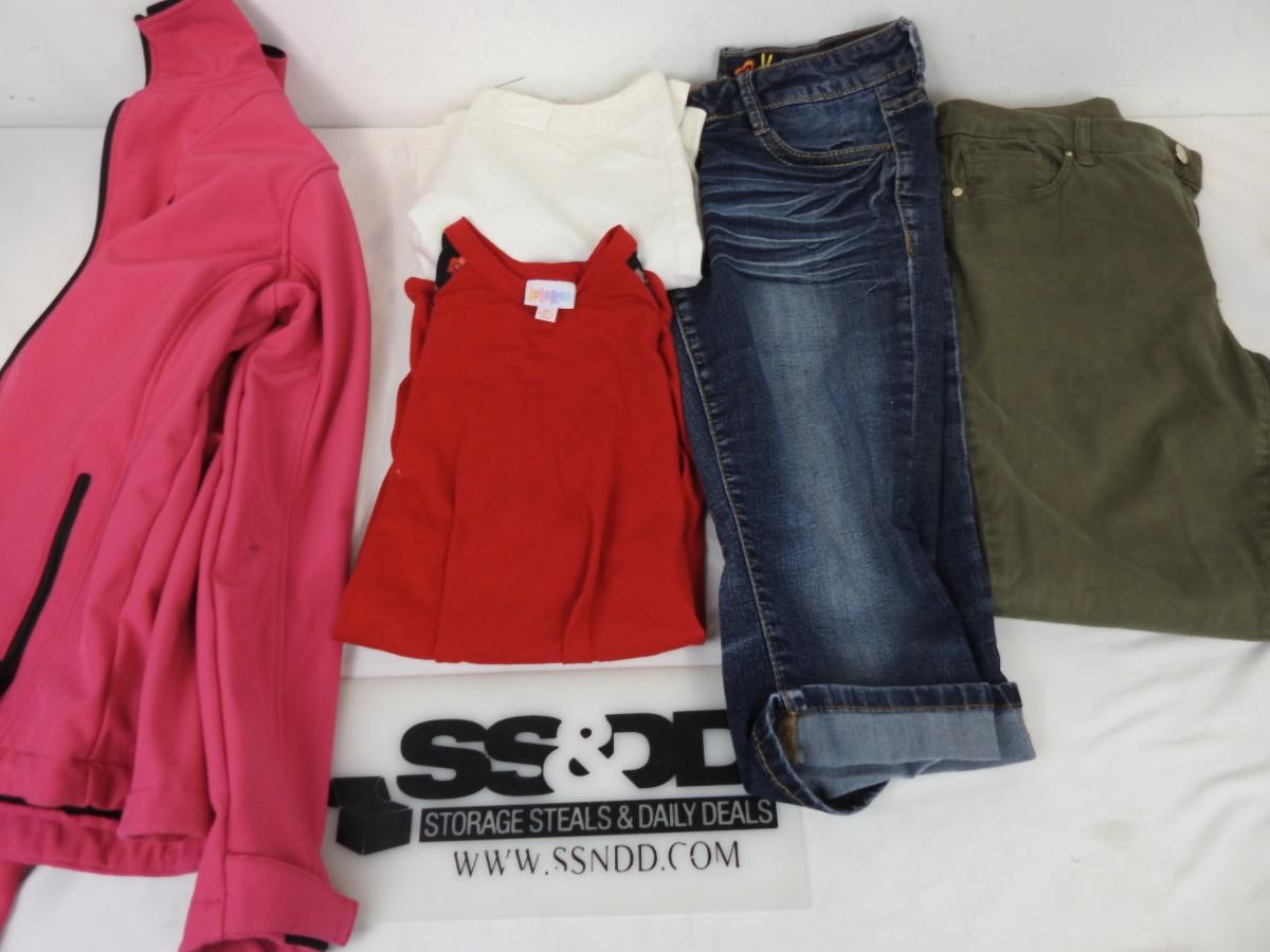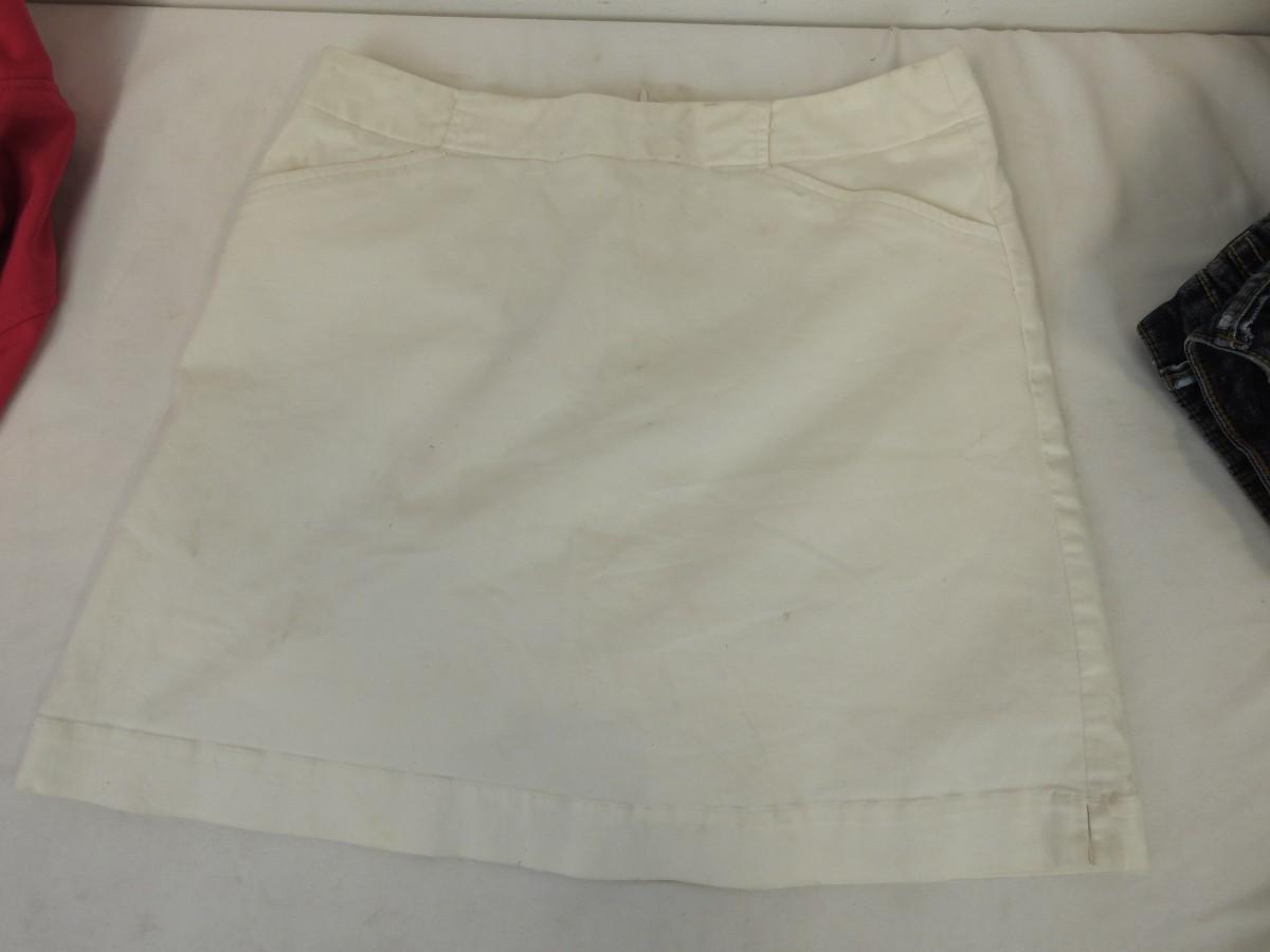 5 pc Women's Apparel: Nike White Skirt, Pink M Sport Jacket, Mudd Shorts Size 9, Chico's Green Pants