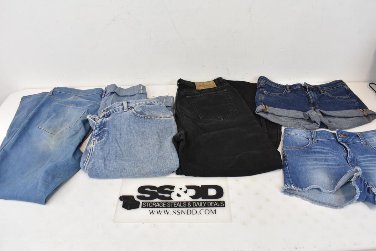 5 pc Women's Denim:: Old Navy 14, Lauren Capris 36" CK Jeans. Shorts 26" & sz 2