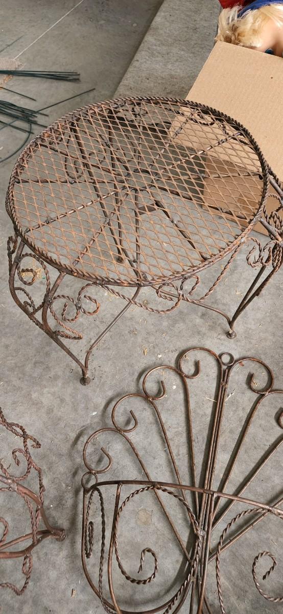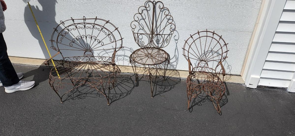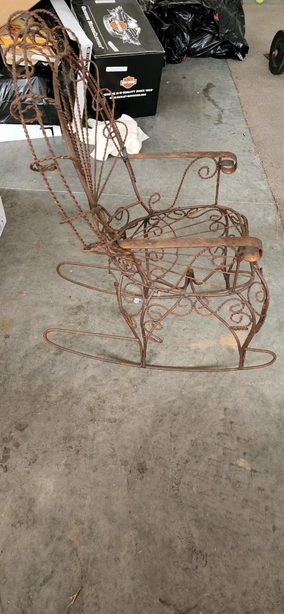 5 piece Children Doll Vintage Wire Furniture Rocker Table Hanging Plant Wall stand