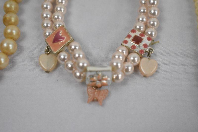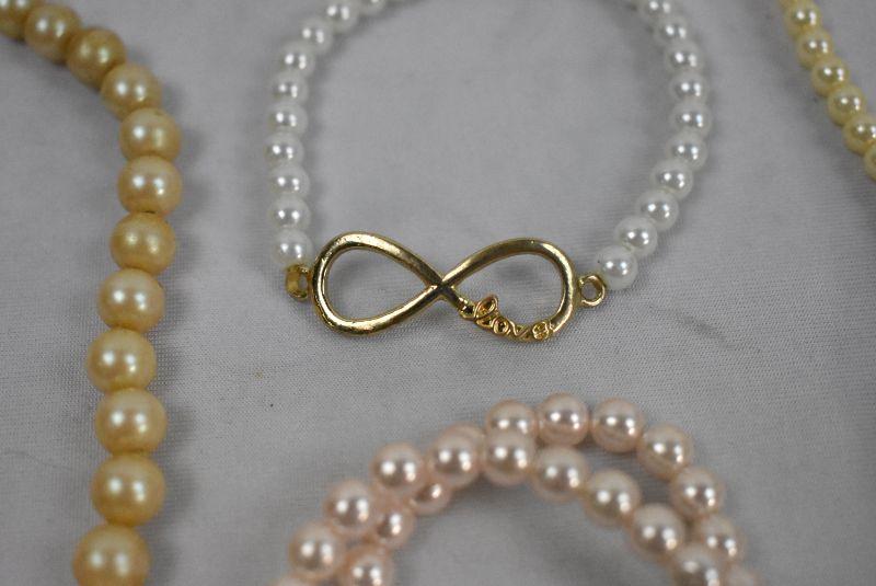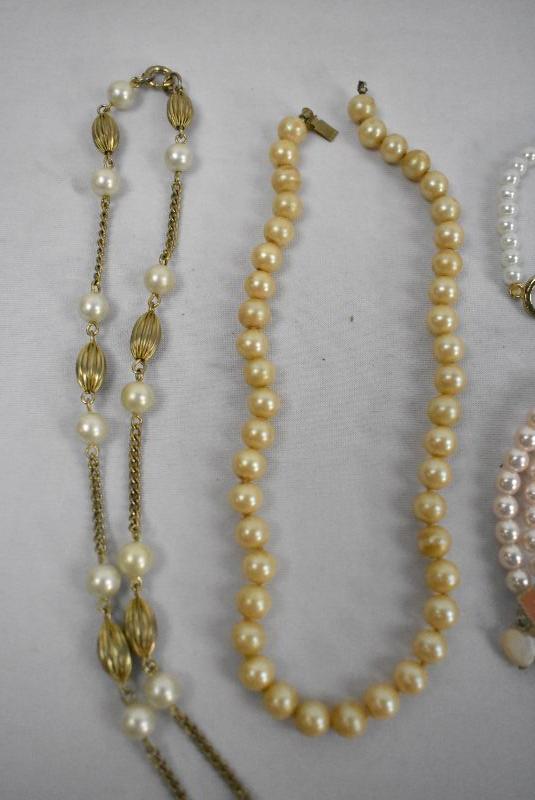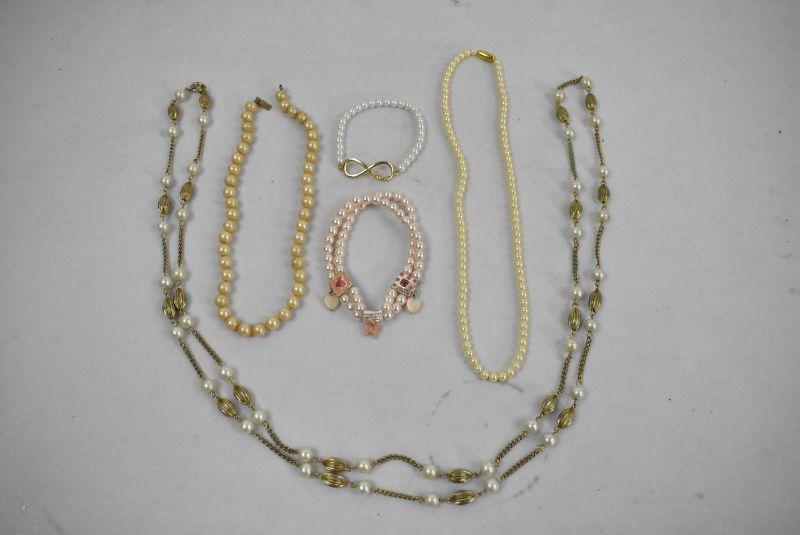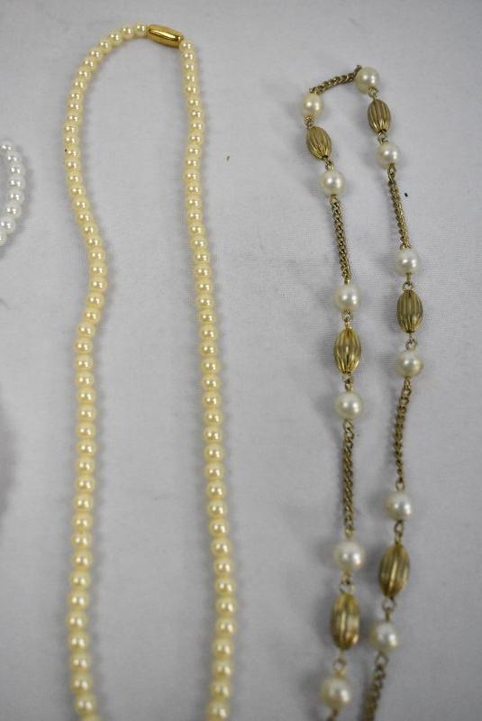 5 Piece Costume Jewelry Lot "Pearls": 3 Necklaces & 2 Bracelets