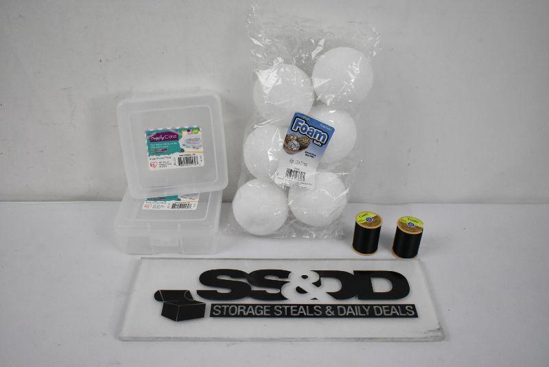 5 Piece Crafting: Black Thread, Supply Cases, FloraCraft Foam 6 Piece Ball - New