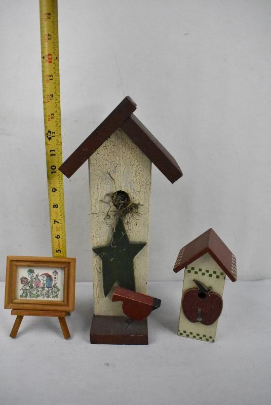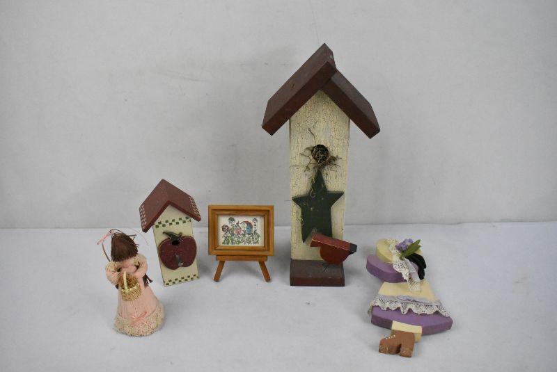 5 Piece Decor: 3 Birdhouses & 2 Dolls