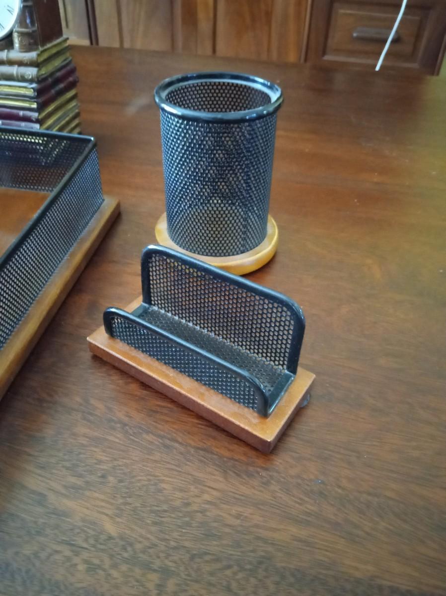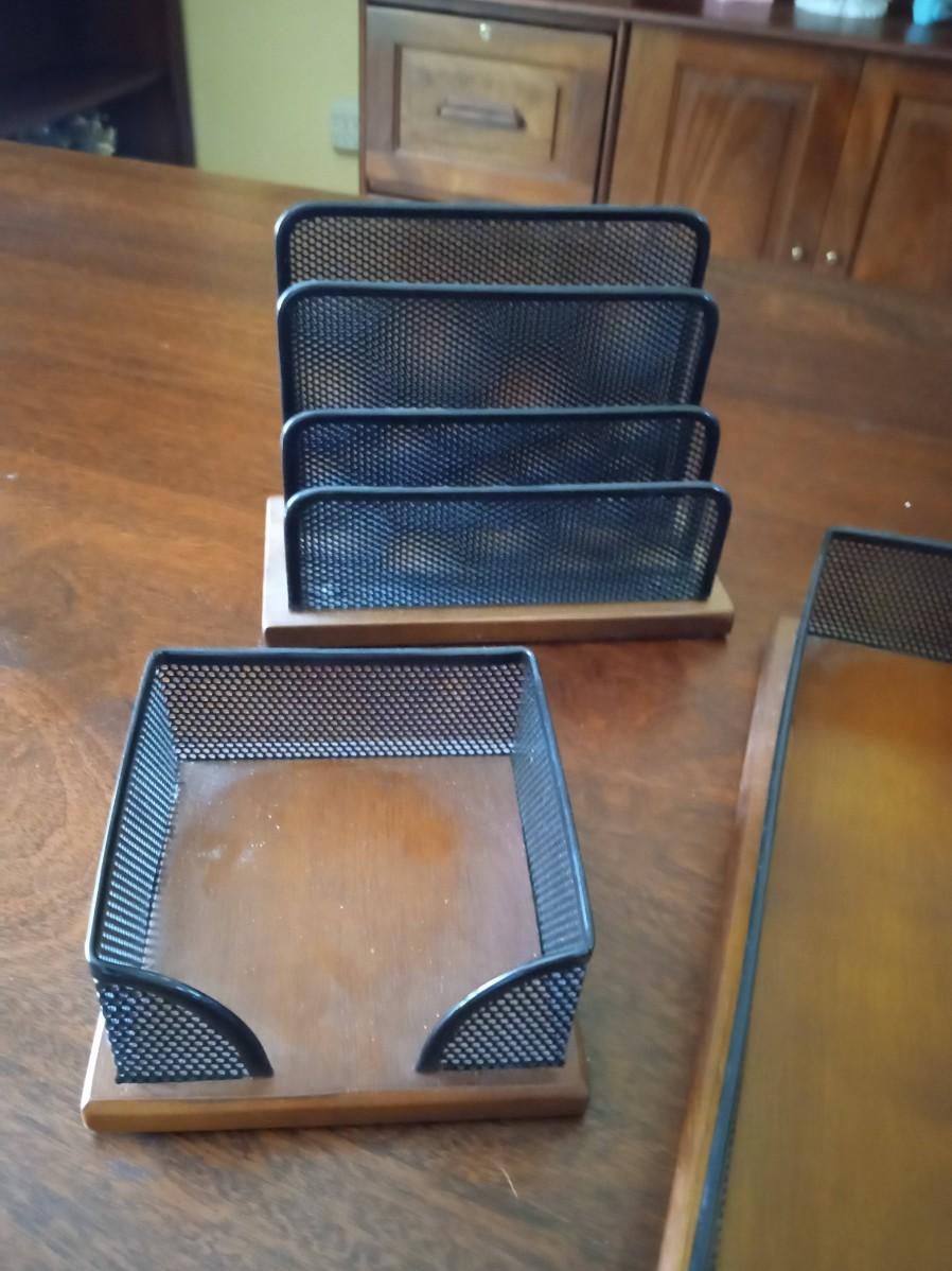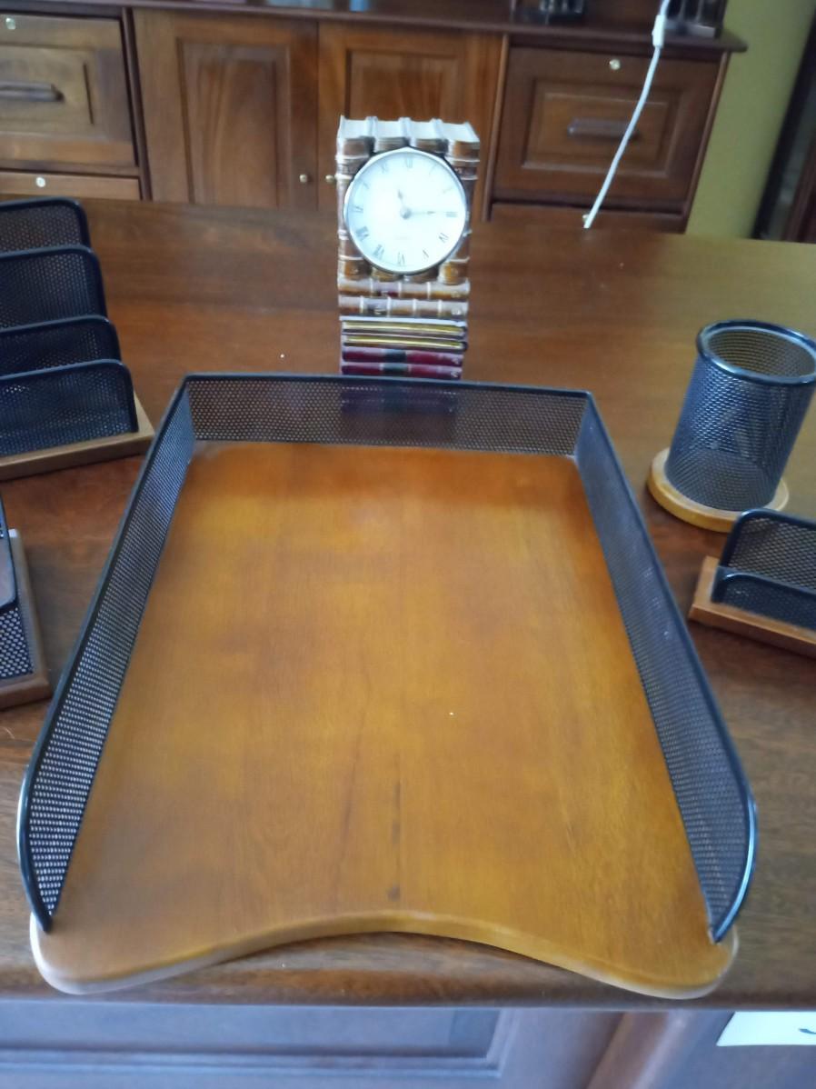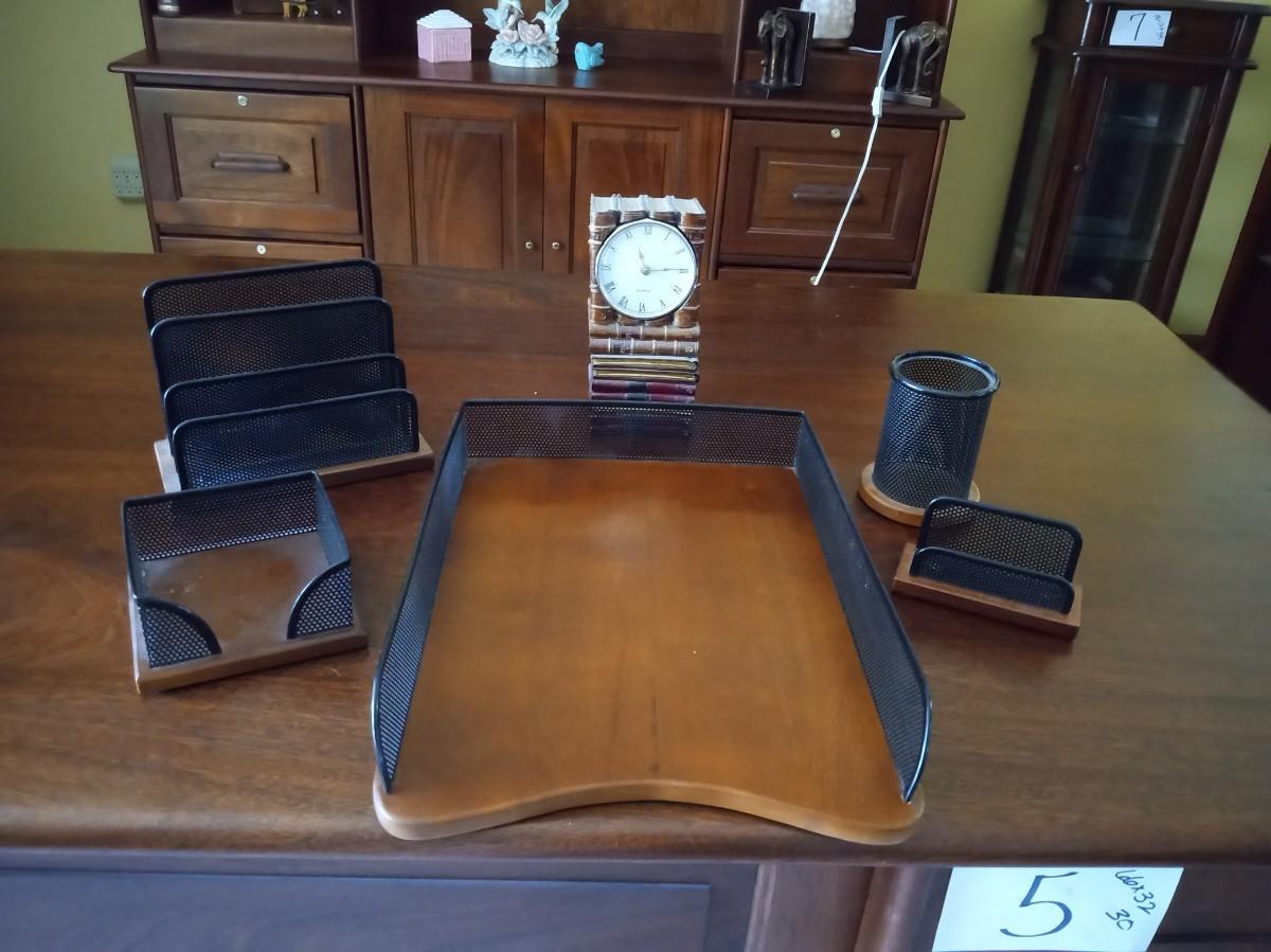 5 PIECE DESK SET ORGANIZERS AND A CLOCK