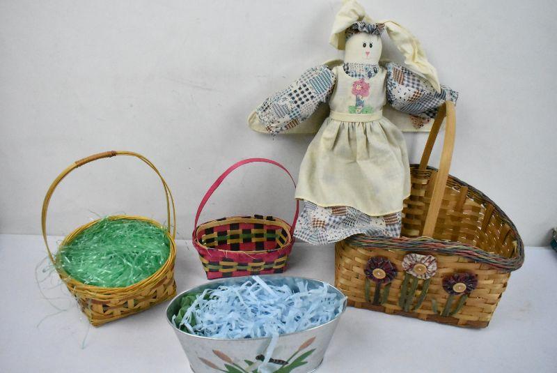 5 Piece Easter Decor: 4 Baskets and 1 Bunny
