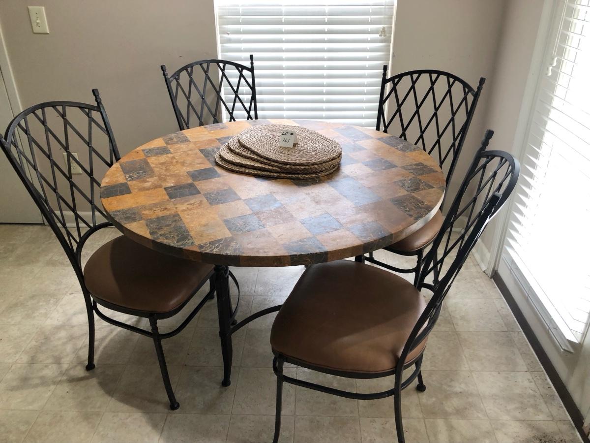 5 Piece Iron and Stone Top Table Set
