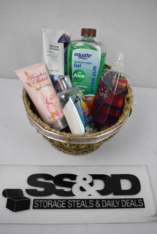 5 Piece Lotion/Body Spray/Aloe in Basket, All Opened