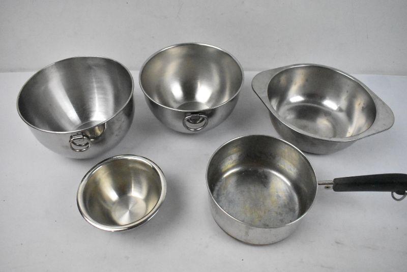 5 Piece Metal Kitchen: 1 Small Saucepan and 4 Mixing Bowls